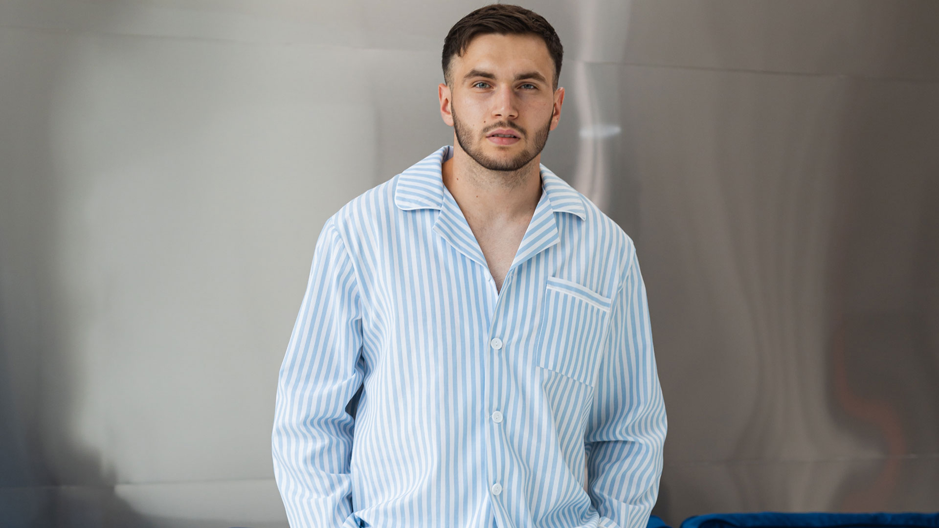 Парні піжами BO.Brand, сорочка та штани з кишенями, колір синій