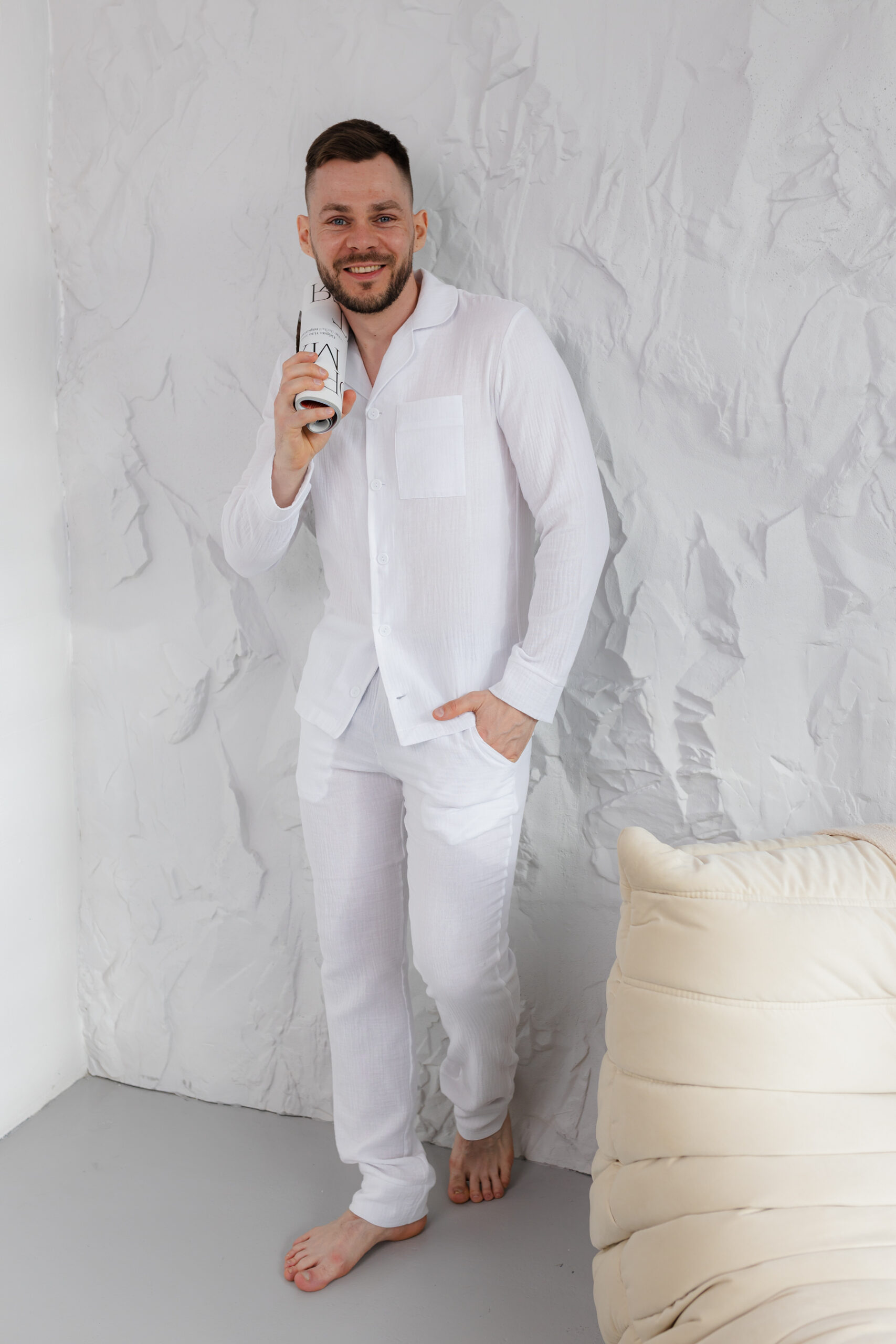Ця біла піжама від BO.Brand – це не просто одяг для сну, а справжня інвестиція у власний комфорт. Дозвольте собі насолоджуватися моментами релаксу у вишуканому стилі з цією неймовірною чоловічою піжамою з мусліну.