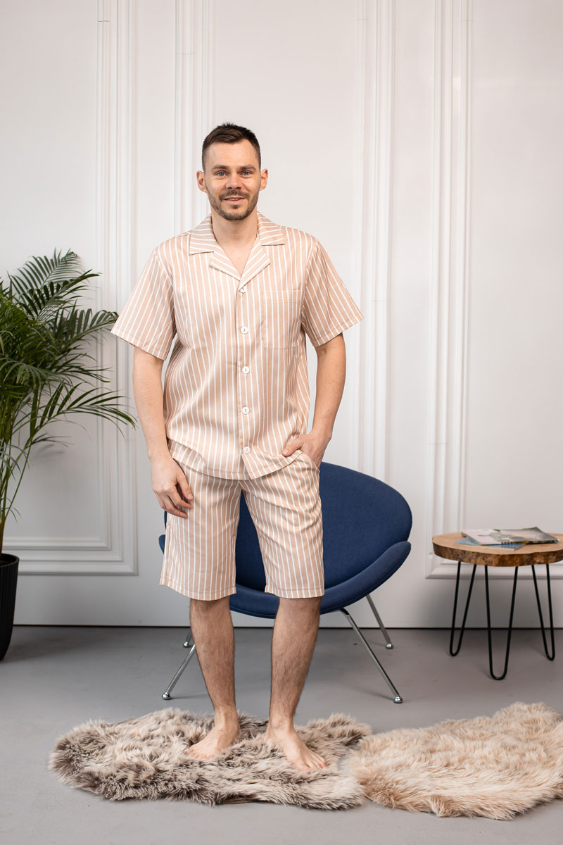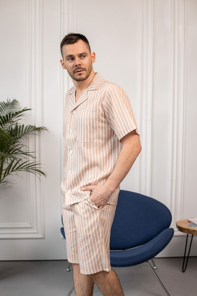 Головна » Магазин » Одяг для чоловіків » Піжами та костюми » Чоловіча піжама BO.Brand з льону в бежеву смужку