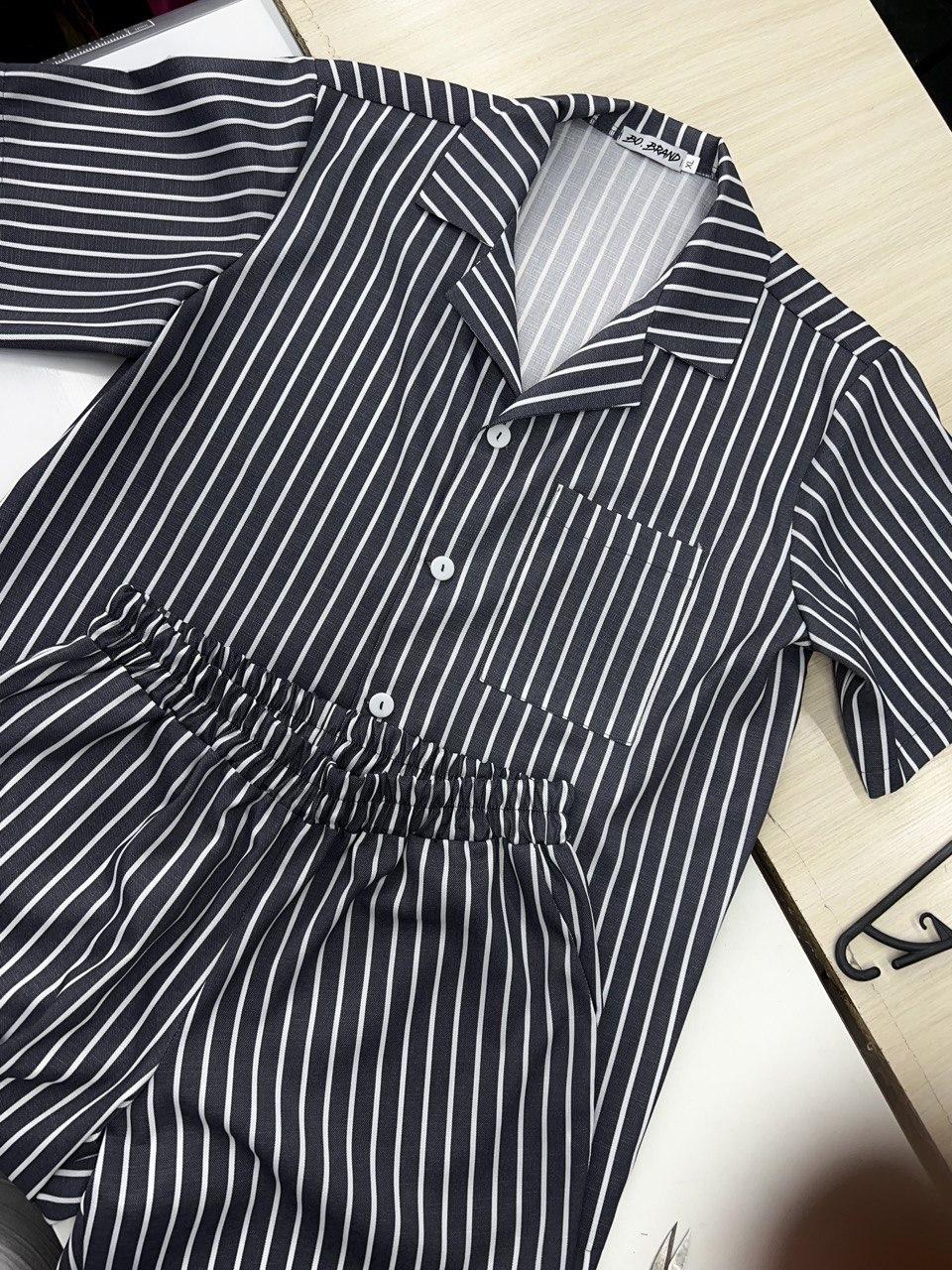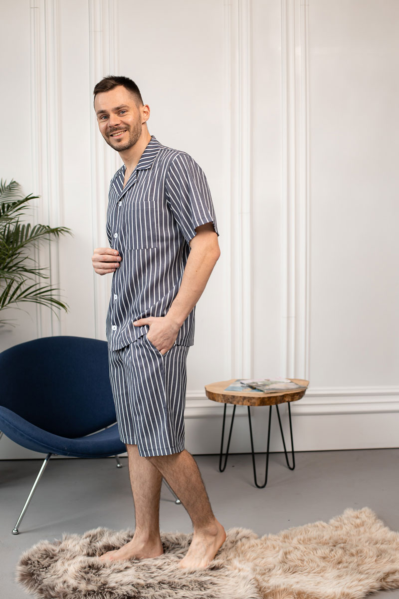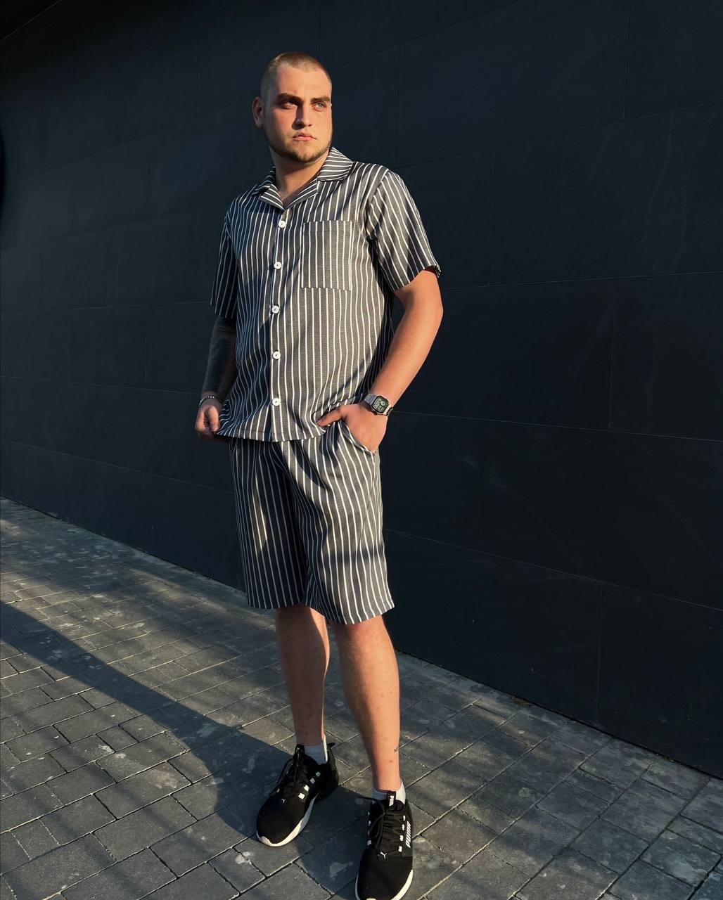 Чоловіча піжама BO.Brand, котон (сорочка на ґудзиках та шорти з кишенями, смужка графіт)