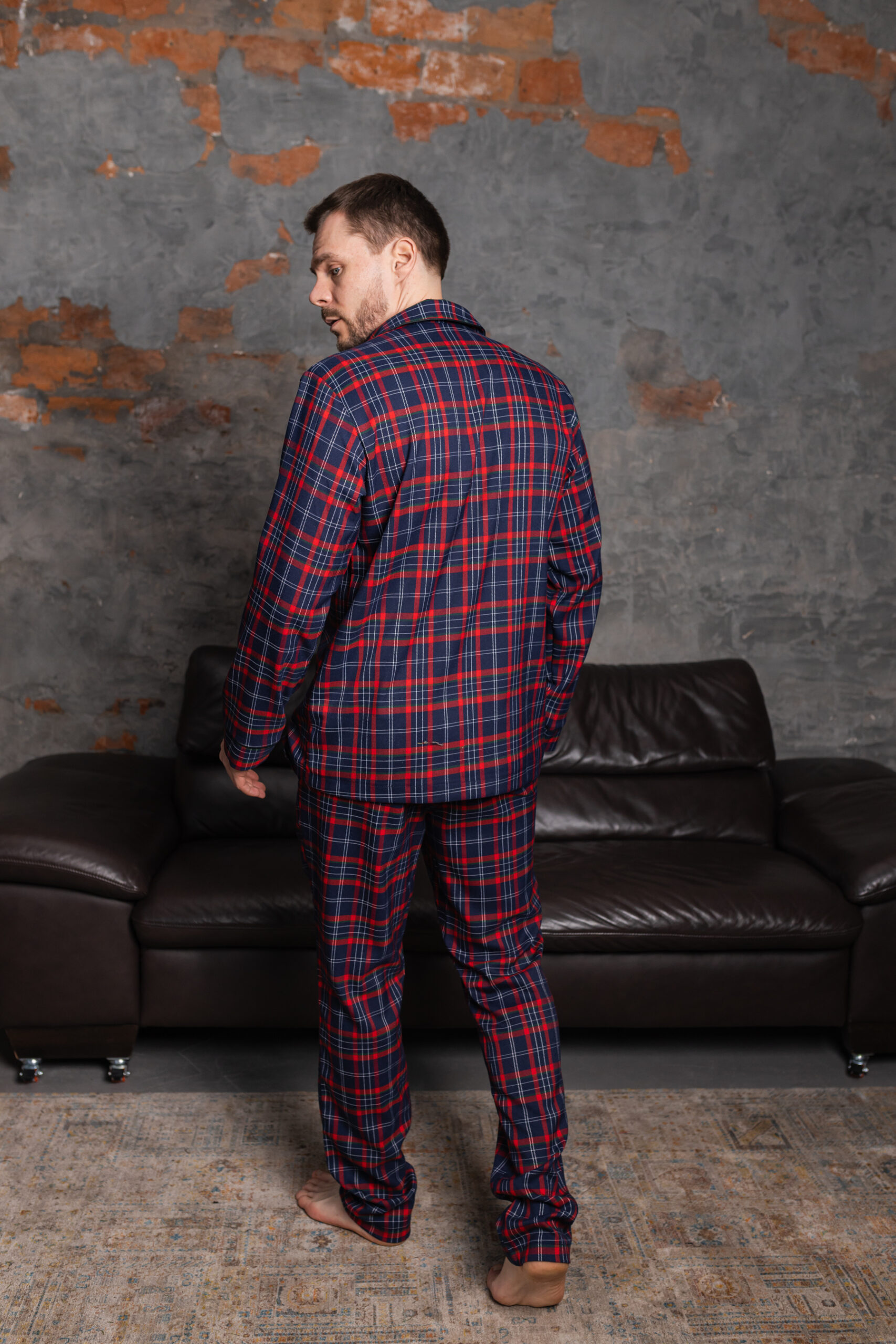 Додайте яскравих акцентів та бездоганного комфорту до вашого домашнього гардероба! Чоловіча піжама BO.Brand у синьо-червону клітинку — це поєднання класичного британського стилю та сучасних стандартів якості. Комплект, що складається із сорочки та штанів, створений для чоловіків, які цінують естетику навіть під час відпочинку.
