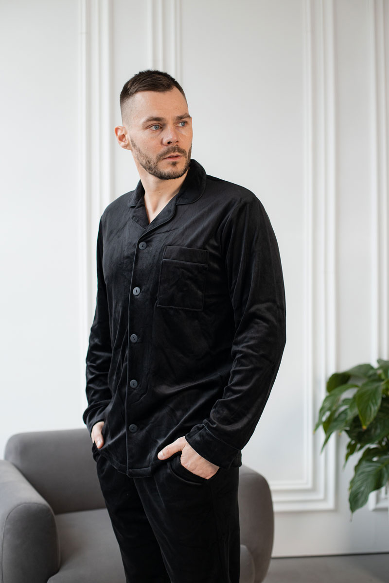 Чоловіча велюрова піжама BO.Brand чорний колір