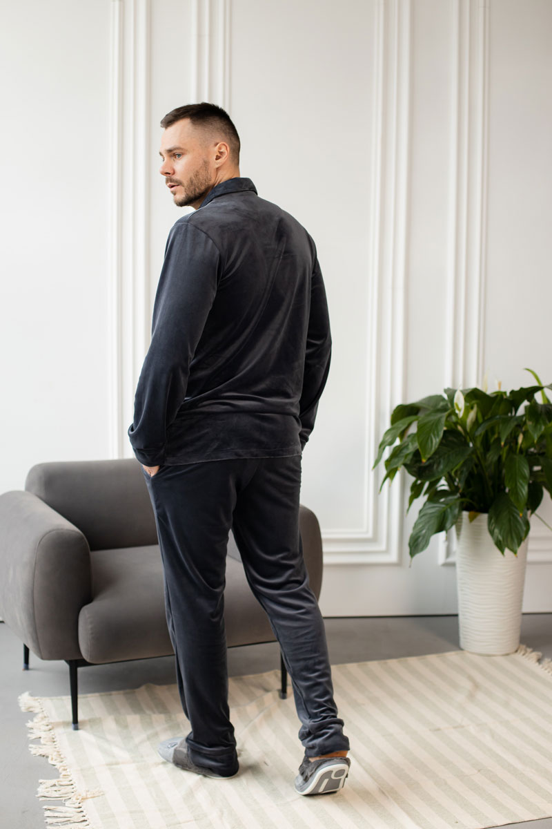 Тепла чоловіча велюрова піжама BO.Brand, колір графіт