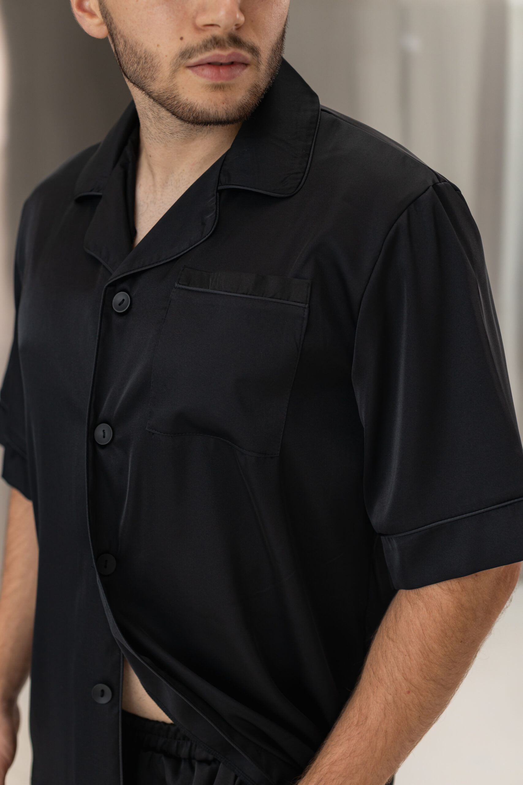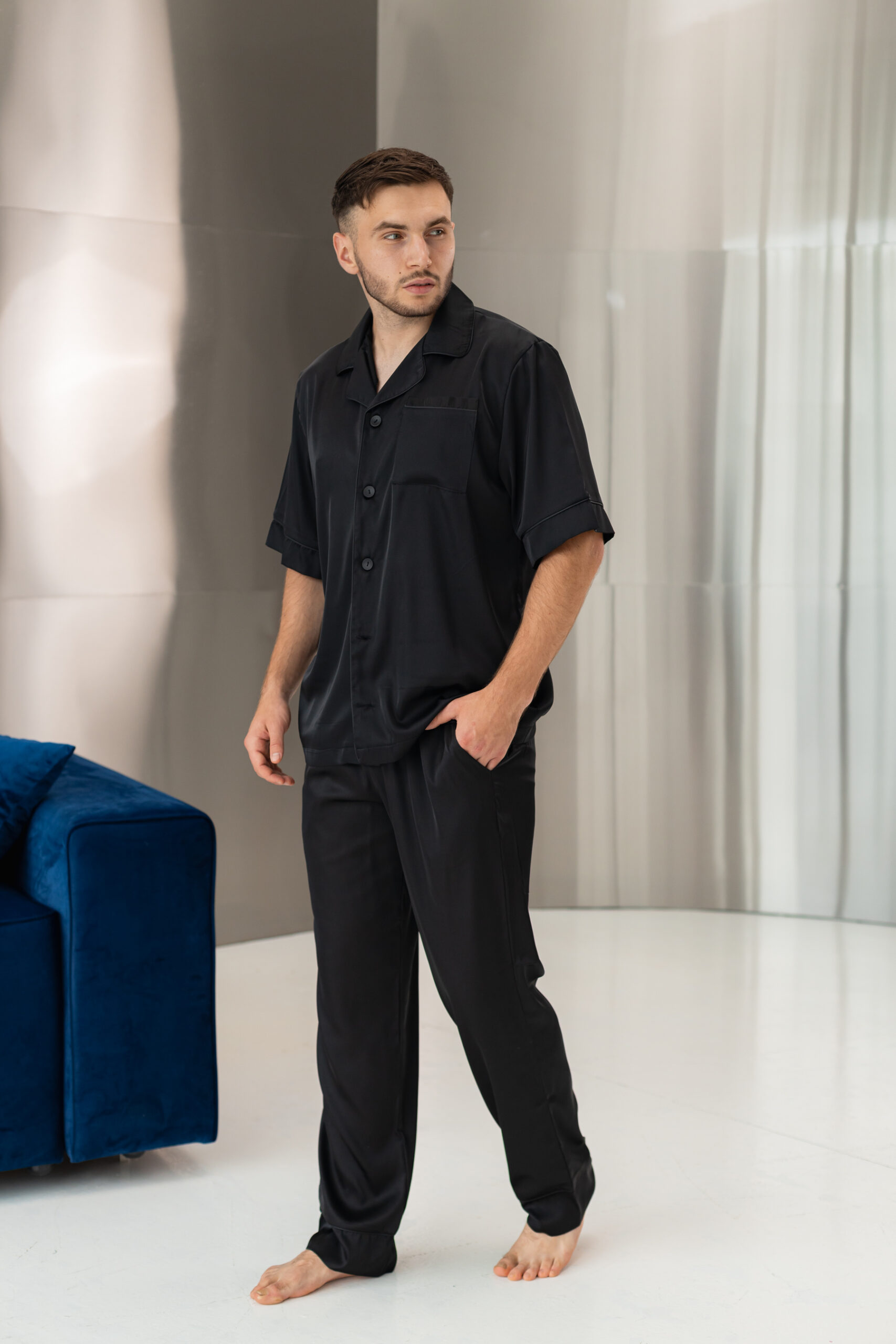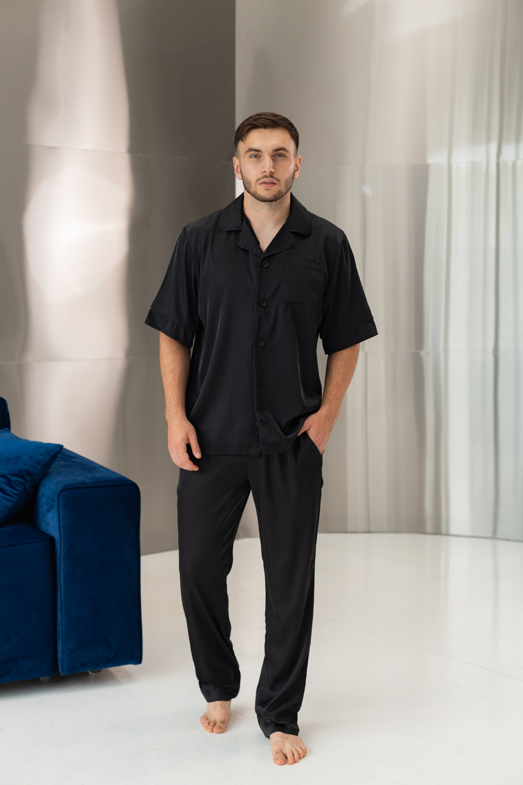 Чоловіча шовкова піжама від BO.Brand — це також чудовий варіант для подарунка. Обирайте перевірену якість від українського виробника. Чоловіча шовкова піжама BO.Brand (чорна) — сорочка та штани. Елегантний комплект для комфортного сну та домашнього відпочинку. Преміальна якість, ідеальна посадка та вишуканий дизайн.