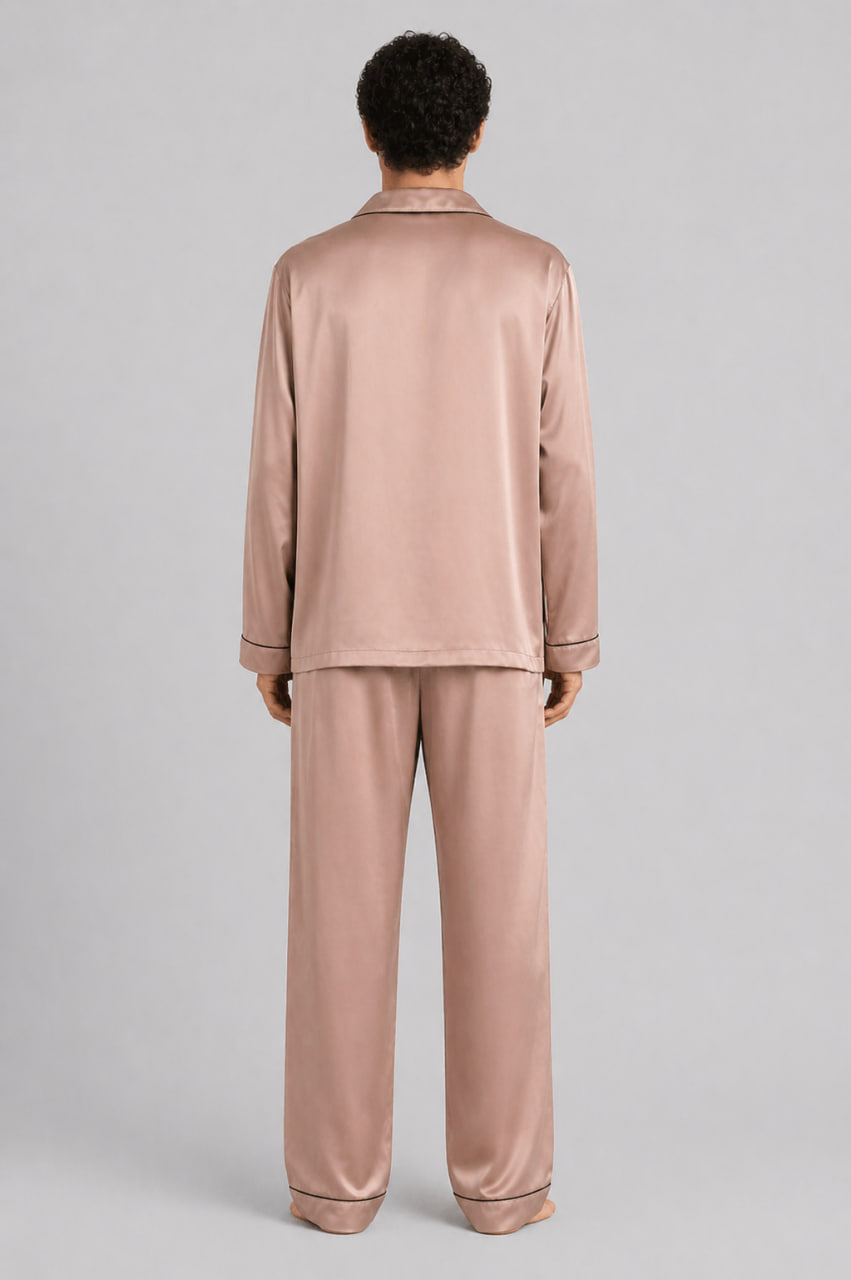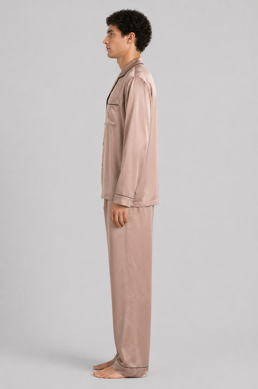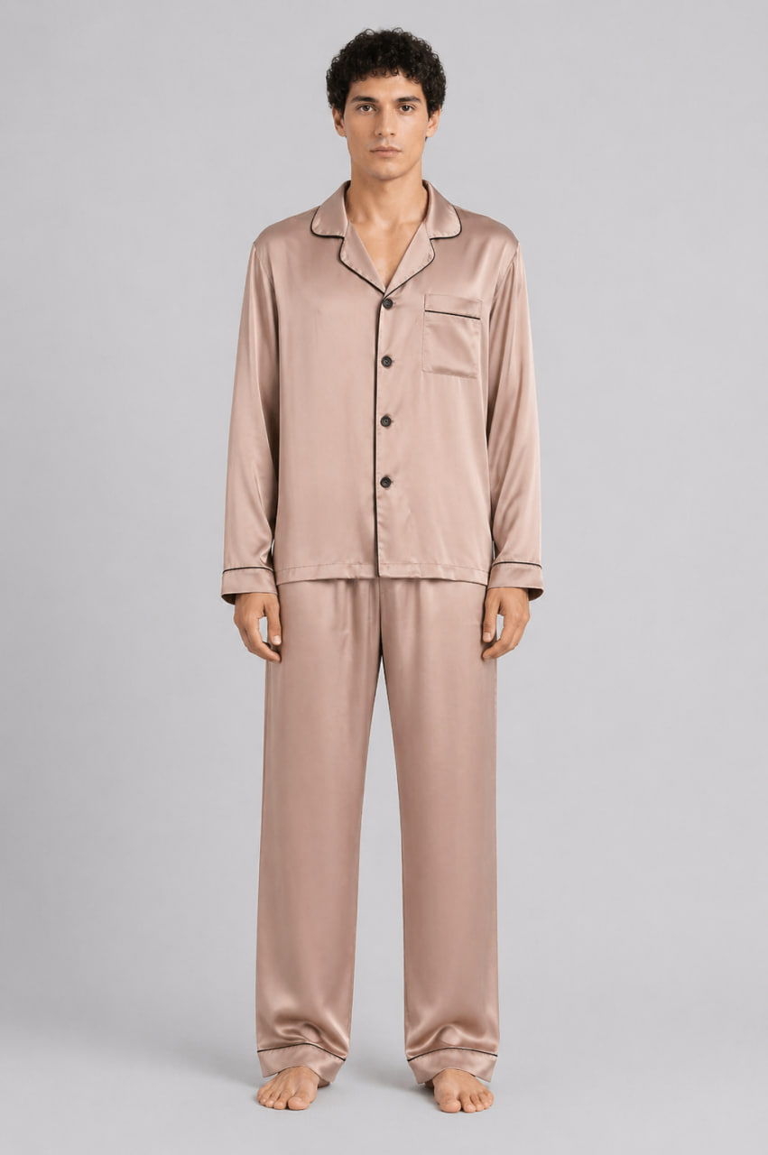 Додайте у свій домашній гардероб відчуття стриманої розкоші та абсолютного затишку з чоловічою піжамою від українського бренду BO.Brand. Шляхетний, обволікаючий відтінок лате підкреслює елегантність моделі, а унікальна дихаюча тканина гарантує бездоганний комфорт.
