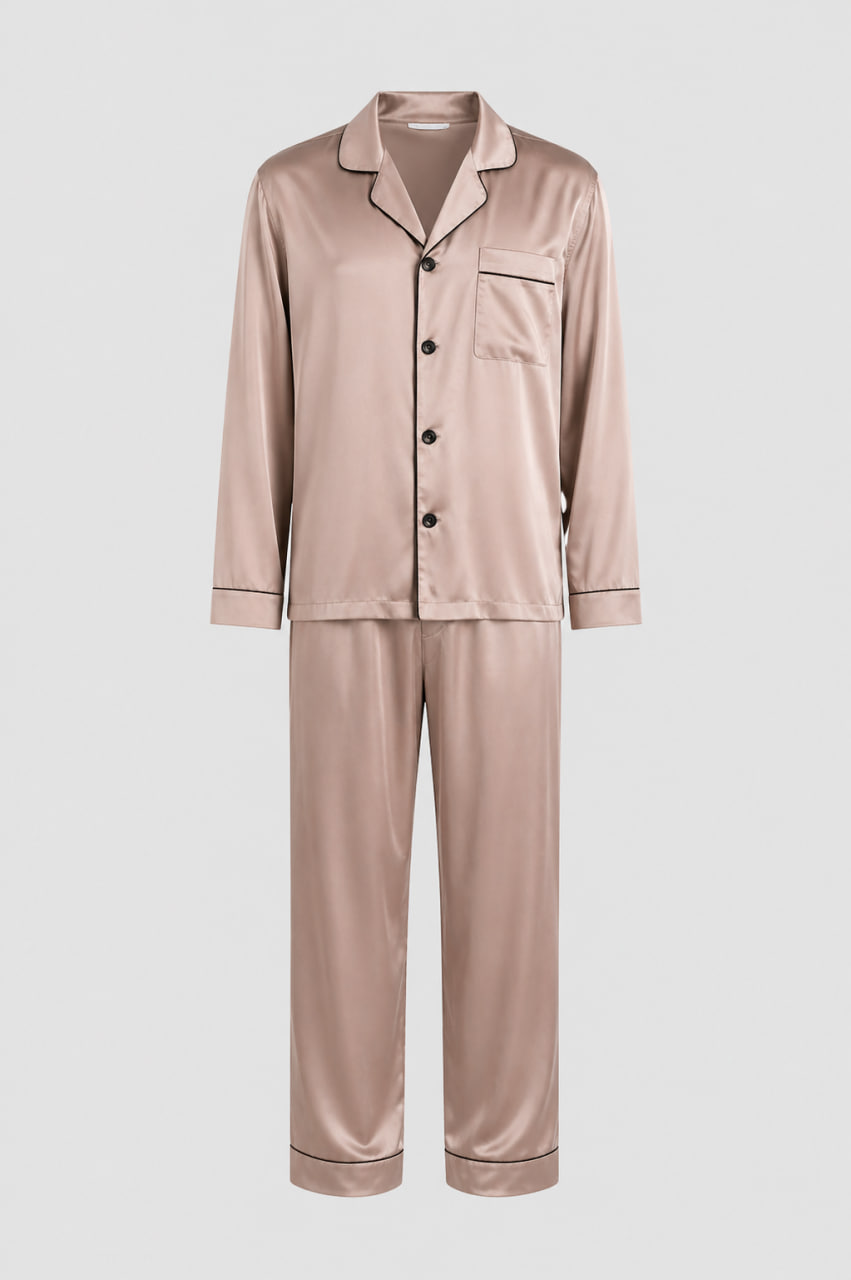 Головна » Магазин » Одяг для чоловіків » Піжами та костюми » Чоловіча шовкова піжама BO.Brand (колір лате) — комплект із віскозного шовку