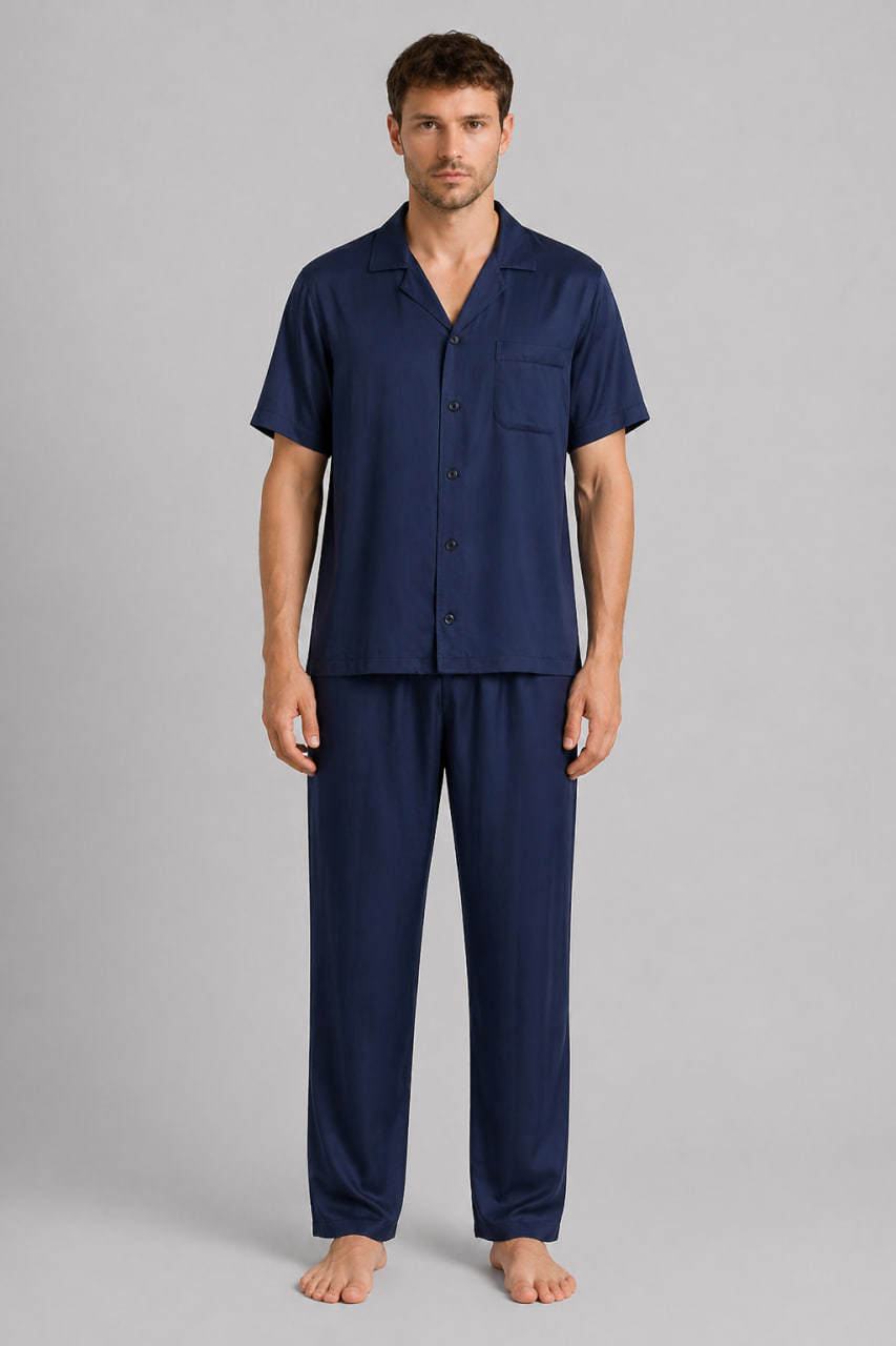 Чоловіча шовкова піжама BO.Brand в глибокому синьому кольорі