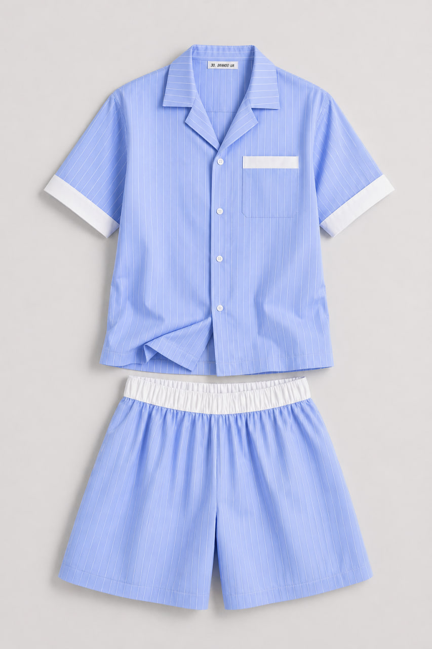 Шукаєте ідеальний баланс між домашнім затишком та бездоганним стилем? Чоловічий домашній костюм від українського бренду BO.Brand створений саме для чоловіків, які цінують якість у кожній деталі. Ця преміальна модель виконана з високоякісного котону (натуральної бавовни) у витонченому блакитному кольорі з білою смужкою.
