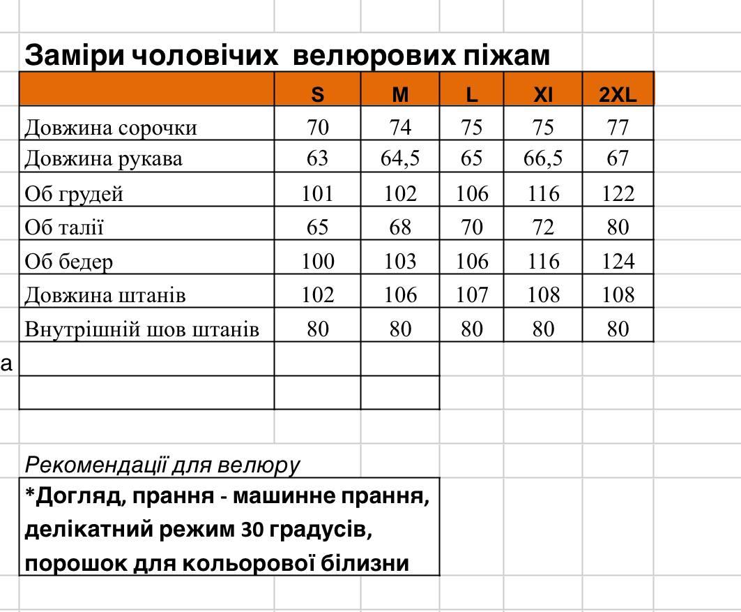 | 8) Внутр. шов штанів | 40 | 40 | 42 | 45 | 51 | 60 | 60 | 63 |