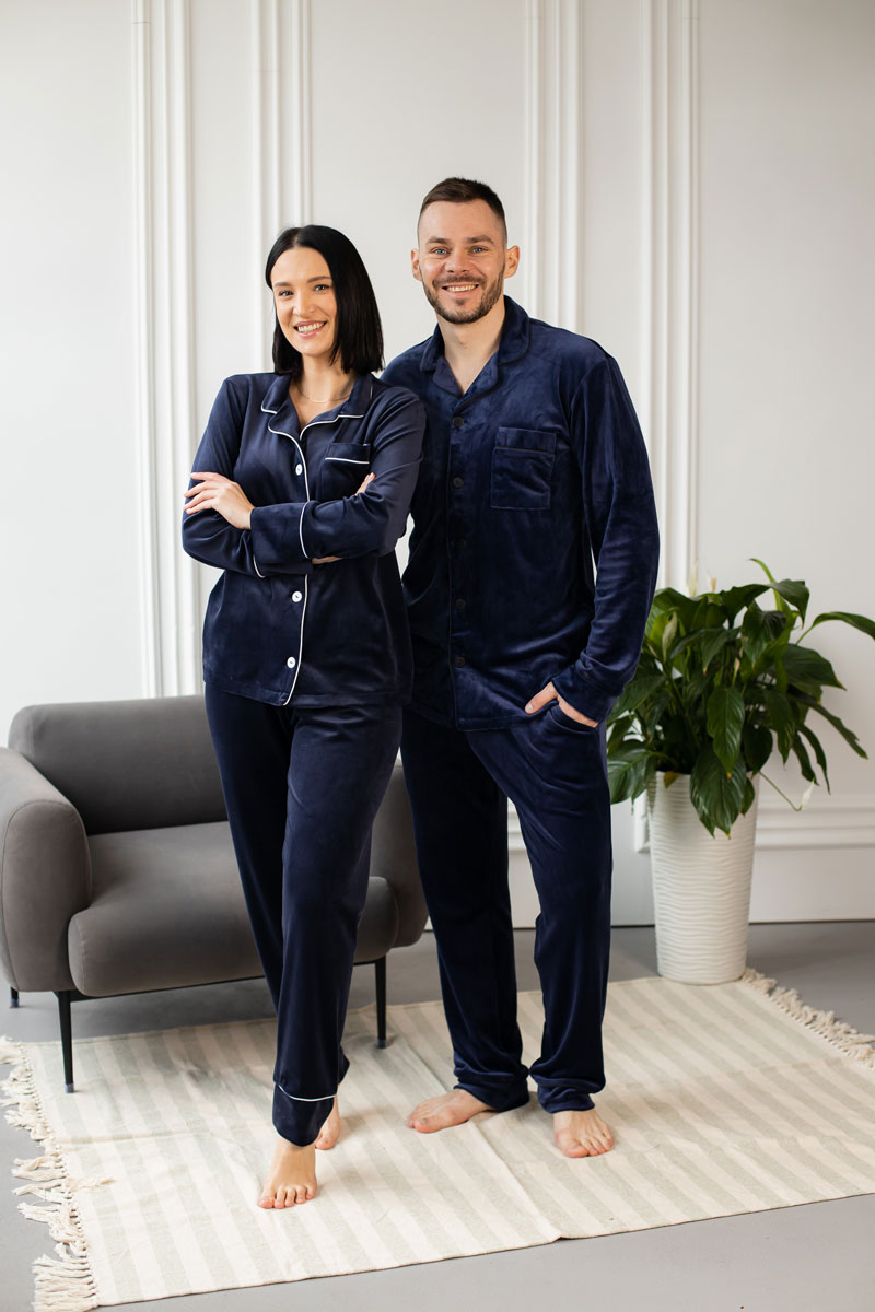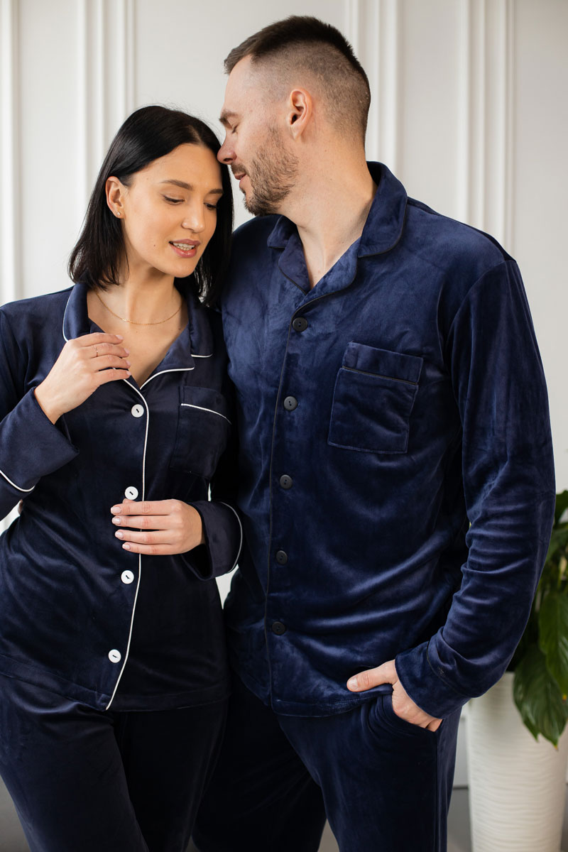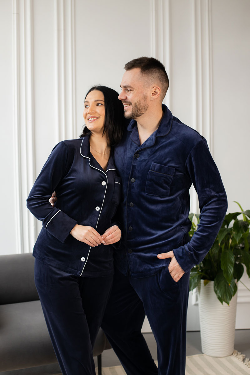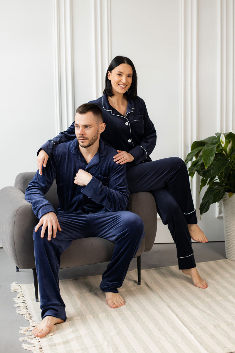 Парні піжами BO.Brand сині велюр – це ідеальний спосіб подарувати комфорт і затишок вашому спільному вечору. Виготовлені з найкращих матеріалів, ці піжами пропонують найвищу якість та стильний дизайн.