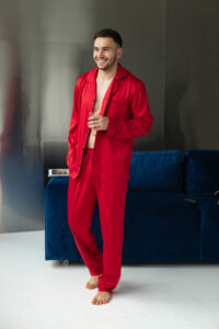 Наша піжама виготовлена з високоякісного шовку, який ніжно обгортає ваше тіло і дарує неймовірний комфорт. Вона м’яка на дотик і додає затишку вашому вечору або ранку. Вам сподобається, як вона гладко лежить на шкірі, дозволяючи вам відпочивати та розслаблятися в будь-який час доби.