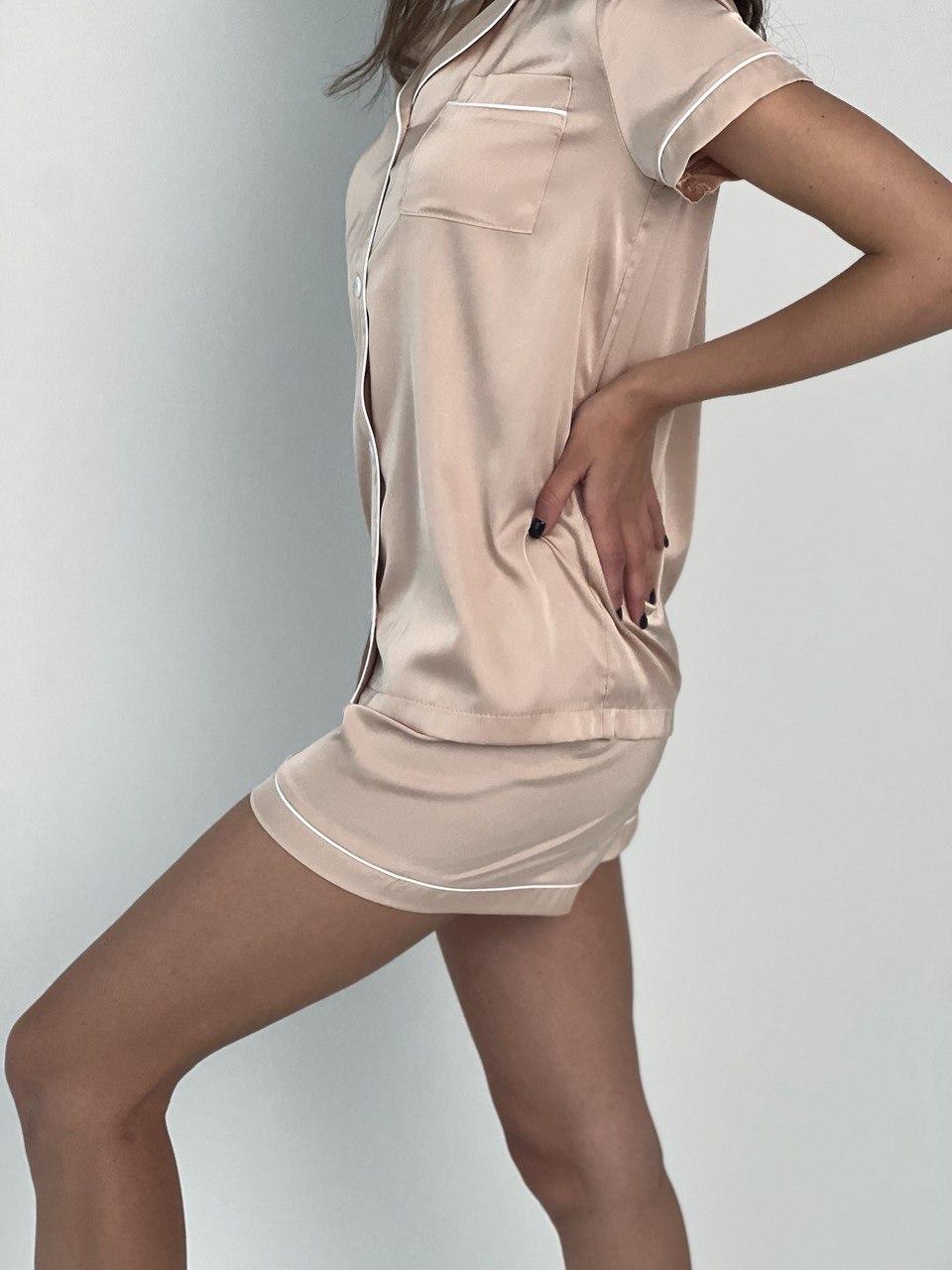 Піжама жіноча BO.Brand сорочка і шорти, колір бежевий