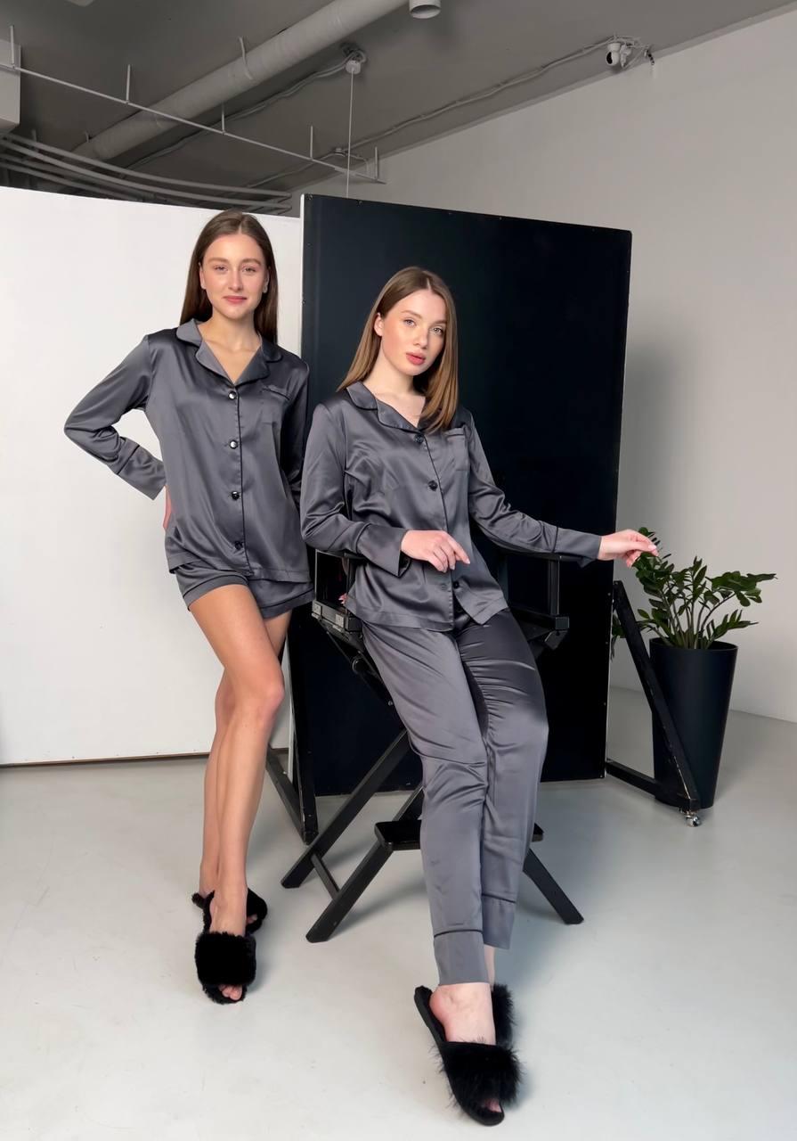 Піжама жіноча BO.Brand з шовку Армані (сорочка, штани та шорти, 3 в 1, колір графіт)