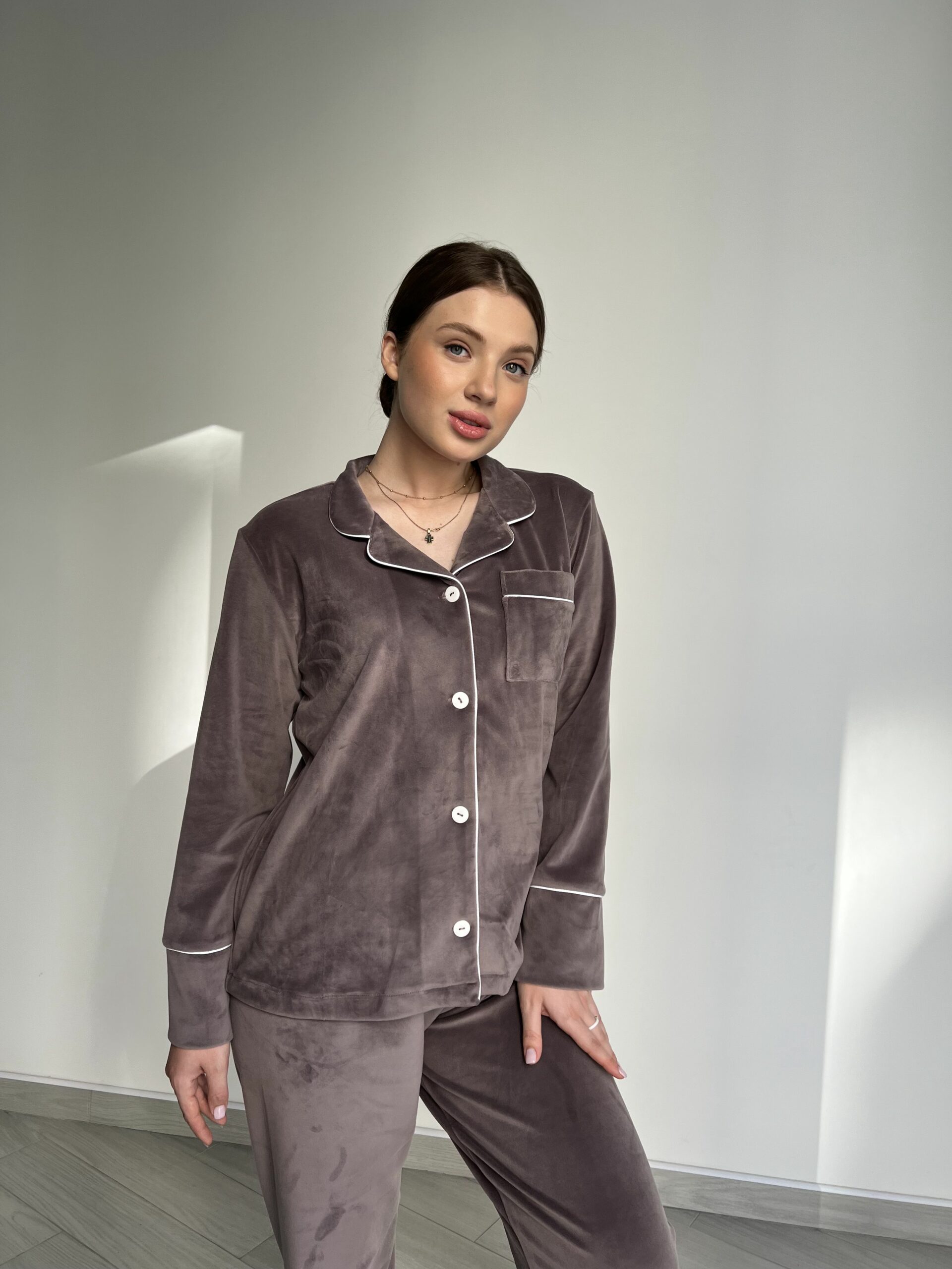 - Стильний дизайн. Дизайн піжами на ґудзиках надає їй елегантний вигляд, а штани забезпечують вільний рух і зручність під час сну.