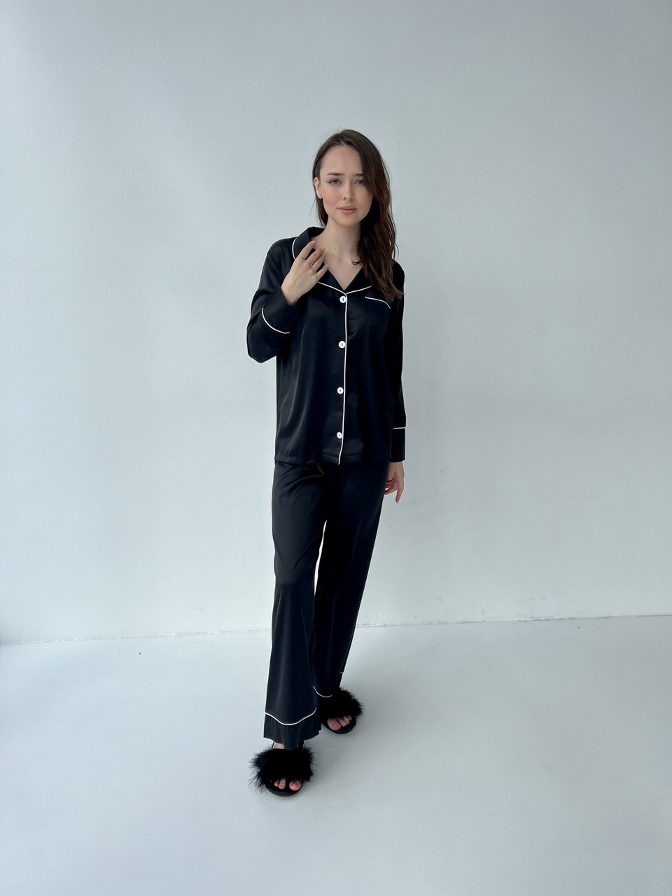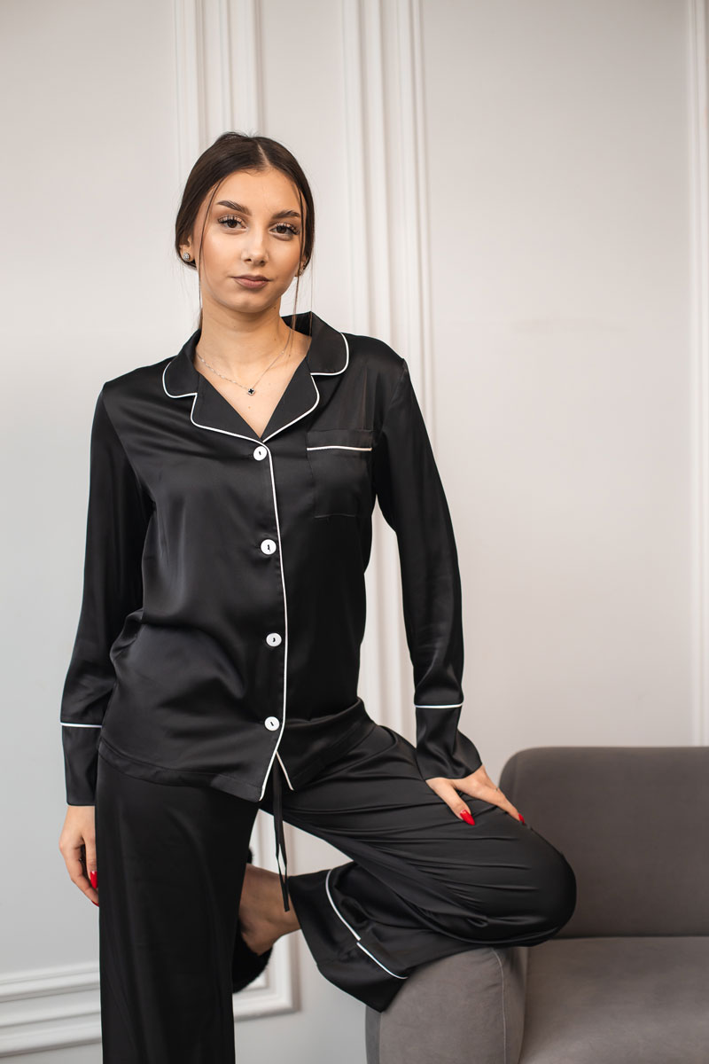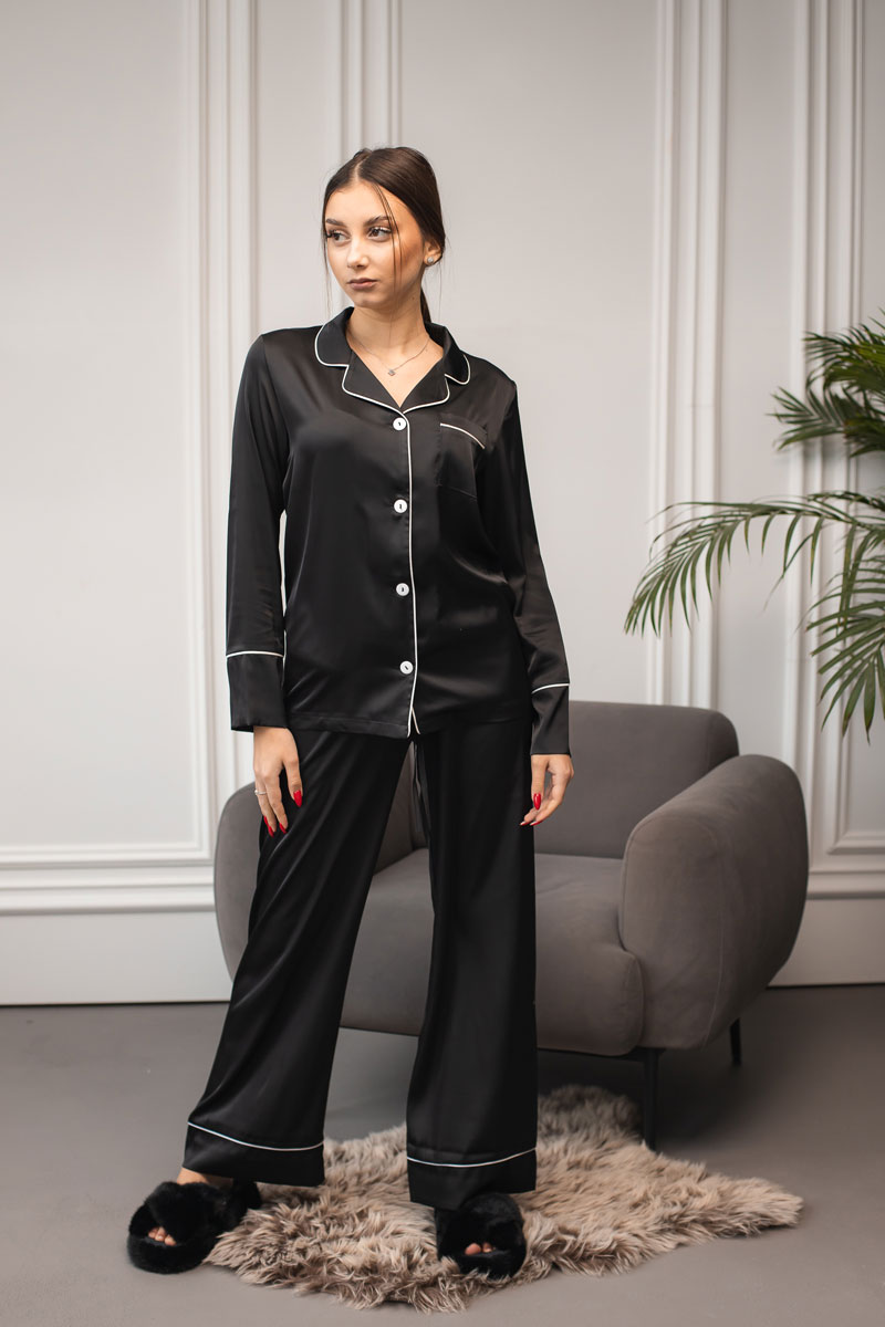 Жіноча піжама 2 в 1 BO.Brand, сорочка та штани, шовк, колір чорний