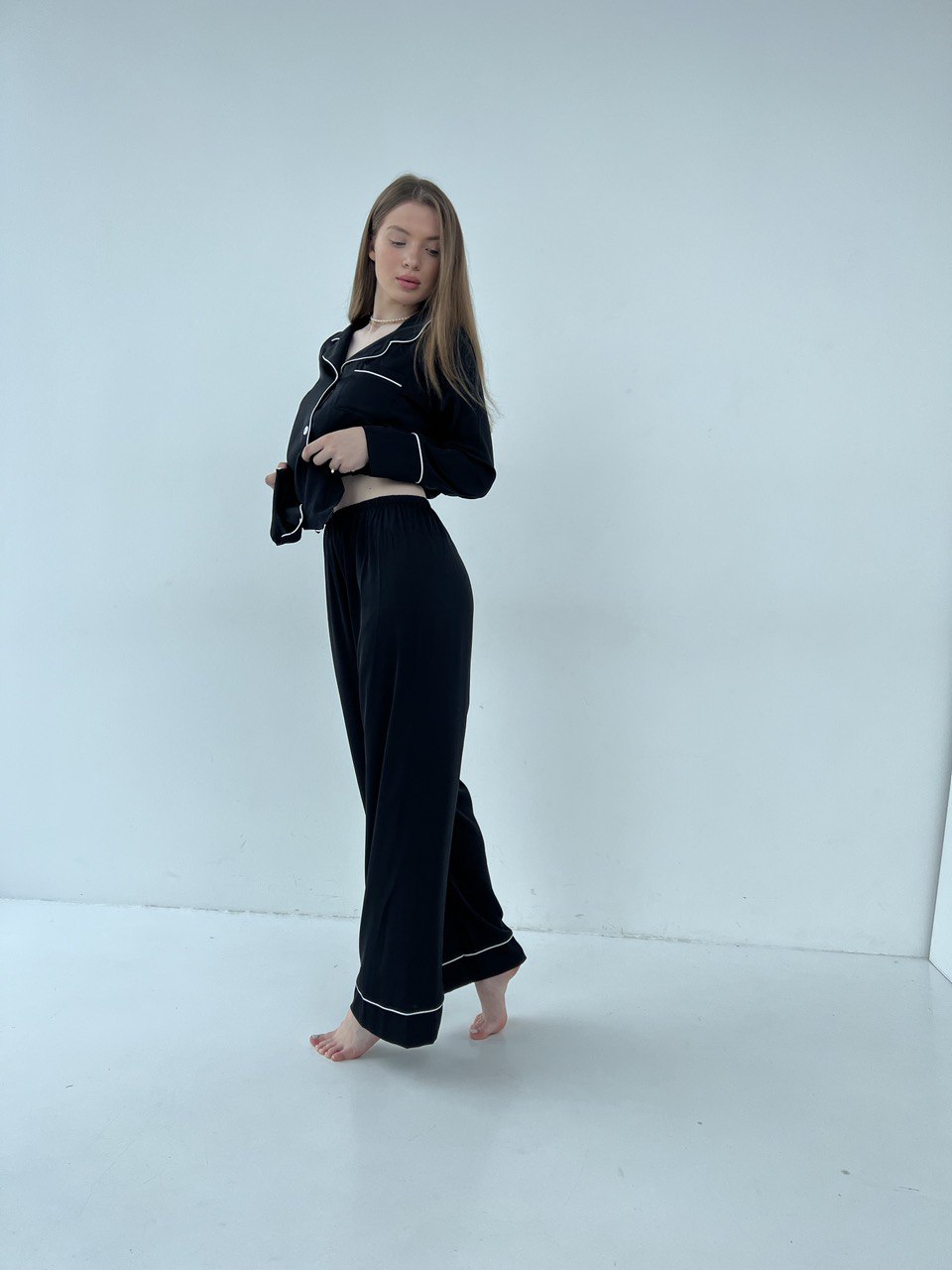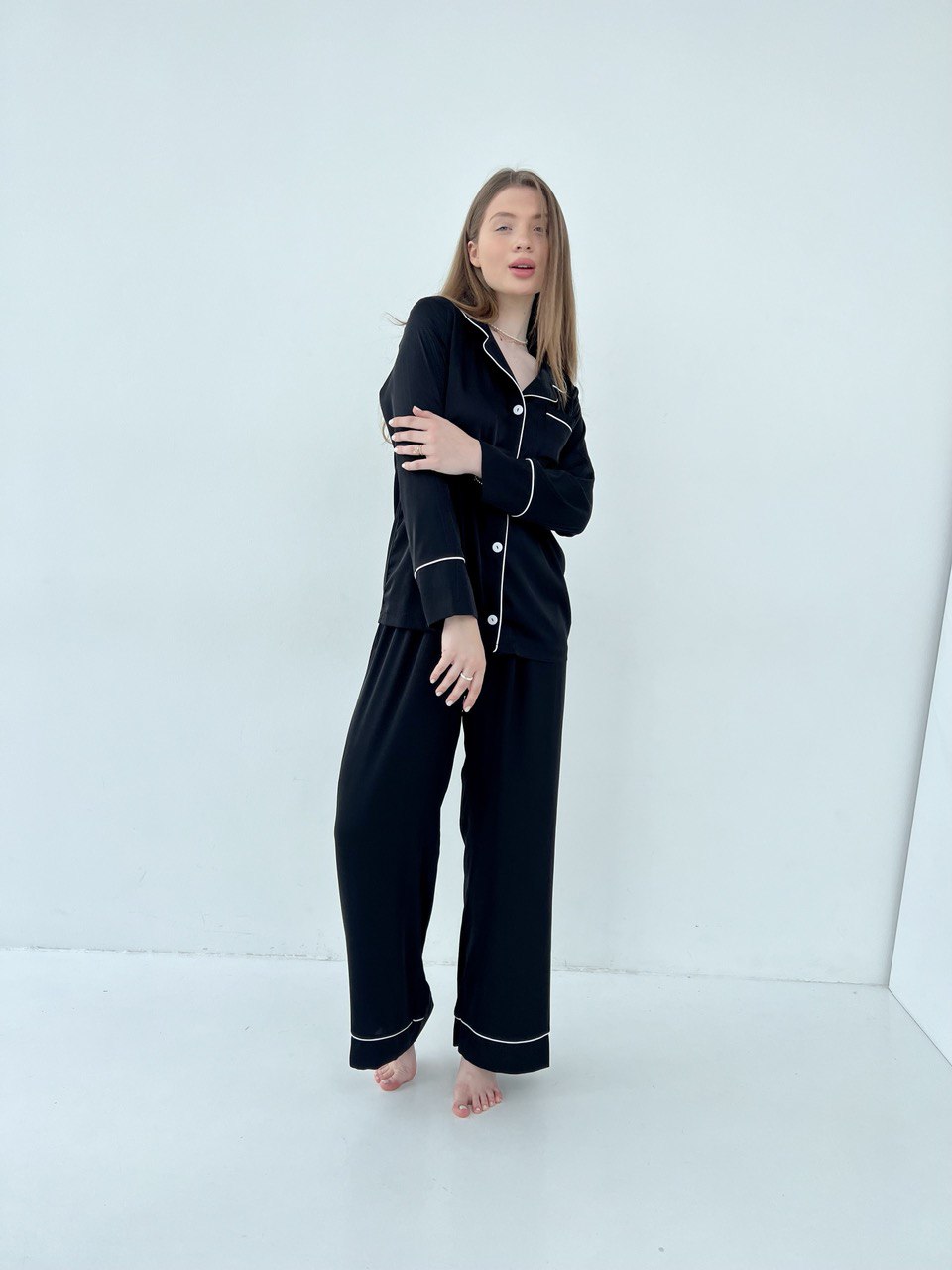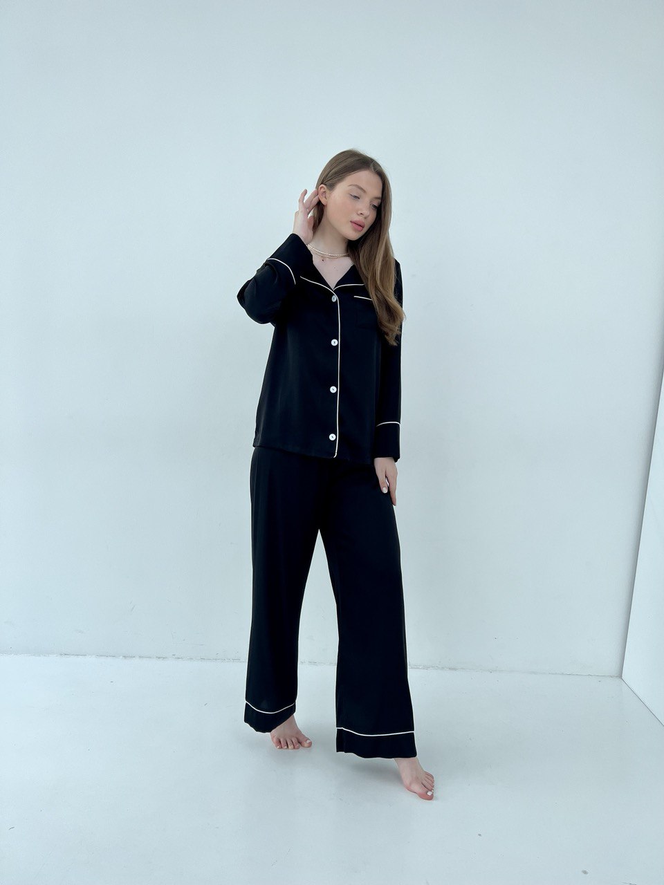 Жіноча піжама 2 в 1 BO.Brand, сорочка та штани, шовк, колір чорний