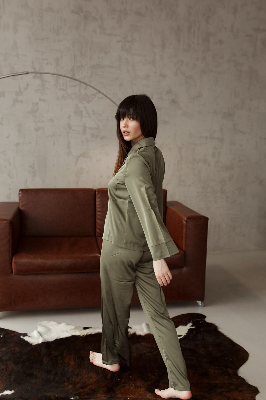 Жіноча піжама BO.Brand атласна (сорочка з довгим рукавом та штани)