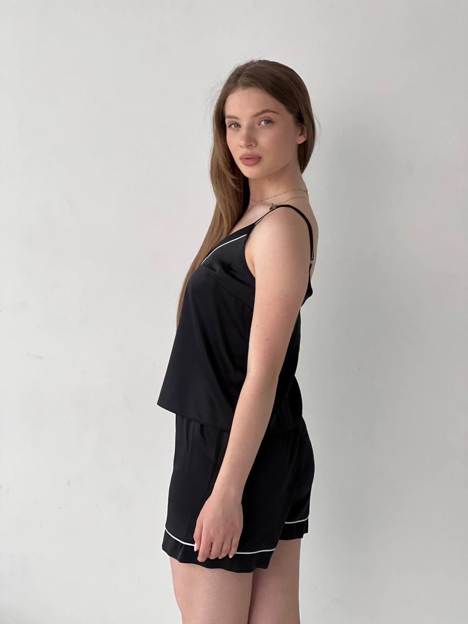 Жіноча піжама чорна BO.Brand майка і шорти, шовк