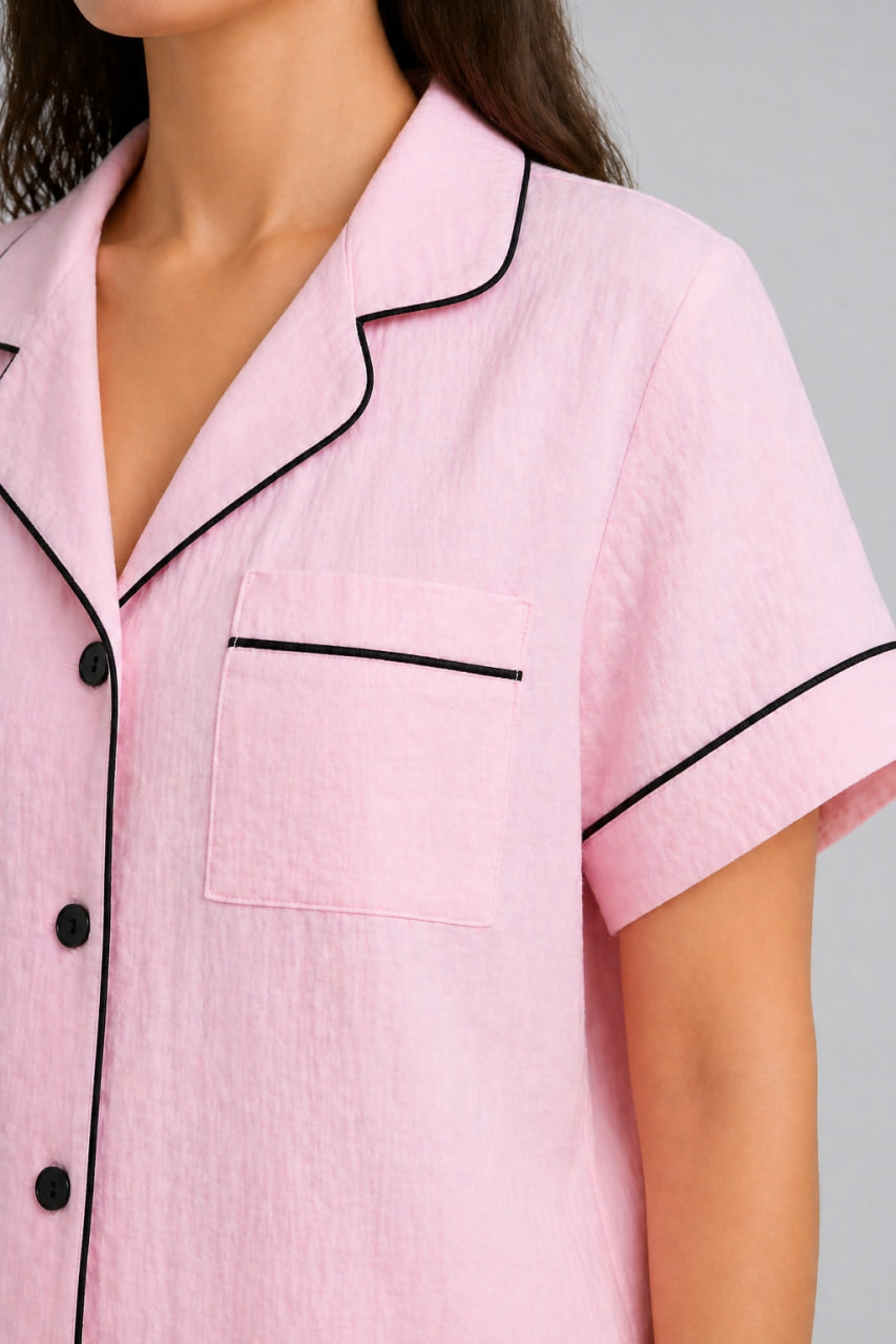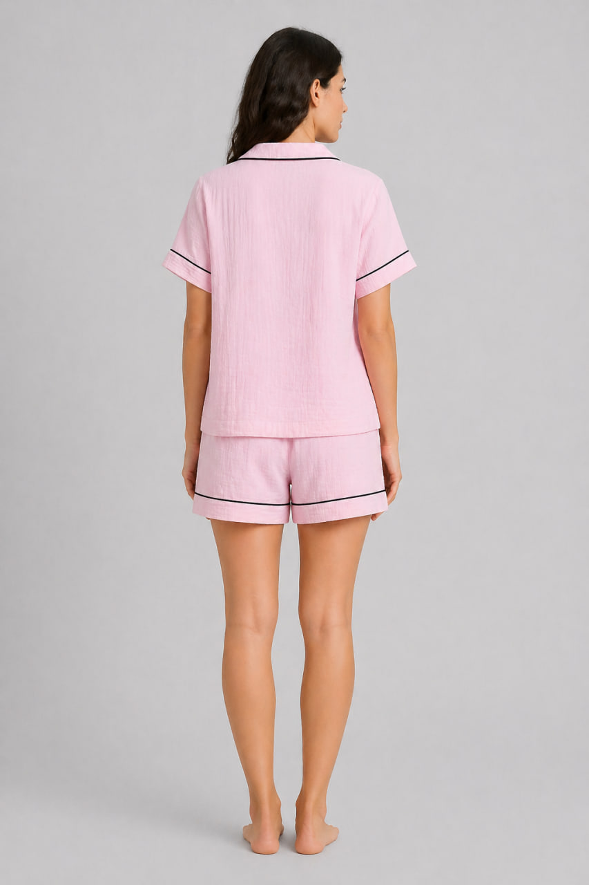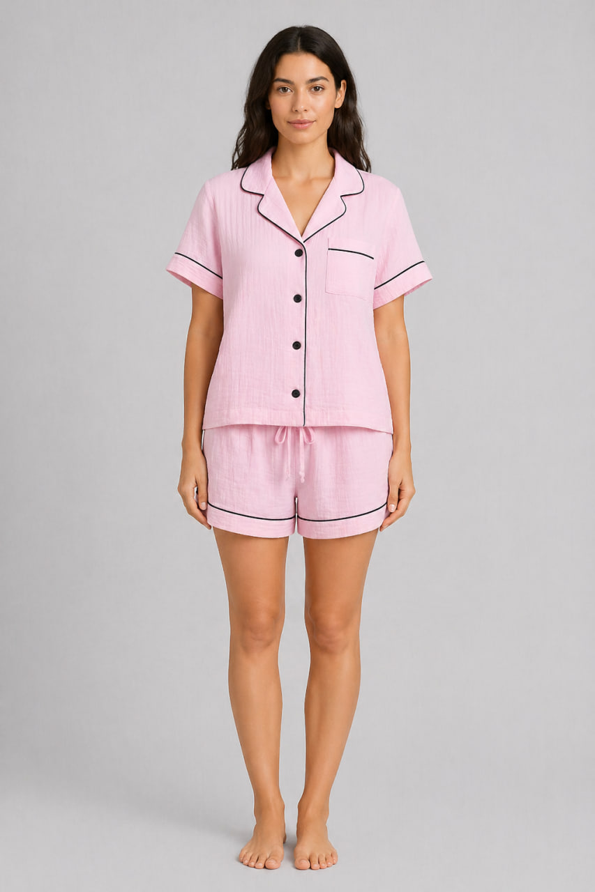 Будьте чарівною навіть уві сні! Замовляйте рожеву муслінову піжаму із сорочкою та шортами від BO.Brand — ви на це заслуговуєте.