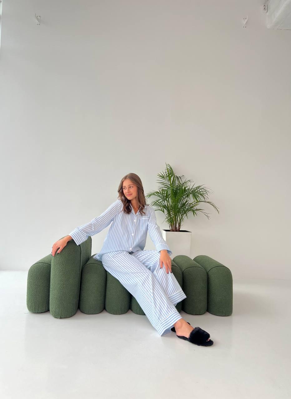 Жіноча сорочка та штани BO.Brand, піжама у блакитну смужку