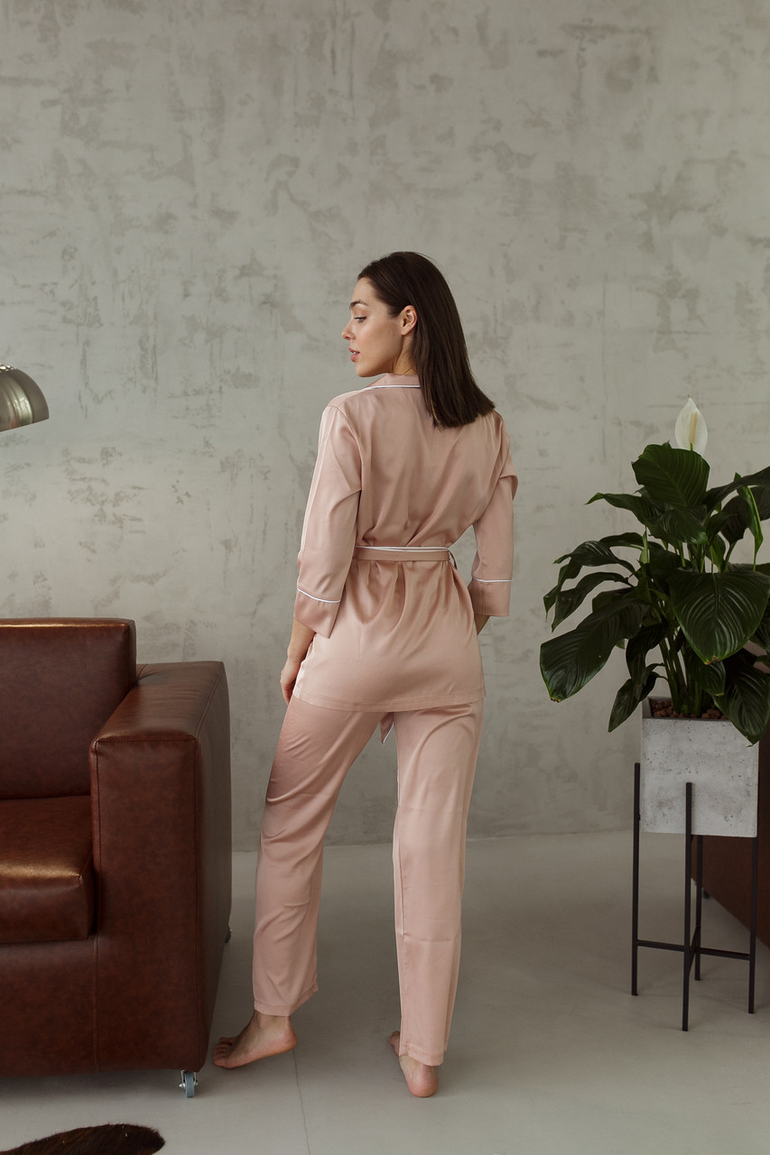 Жіноча піжама BO.Brand всесезонна, сорочка та штани, колір пудровий