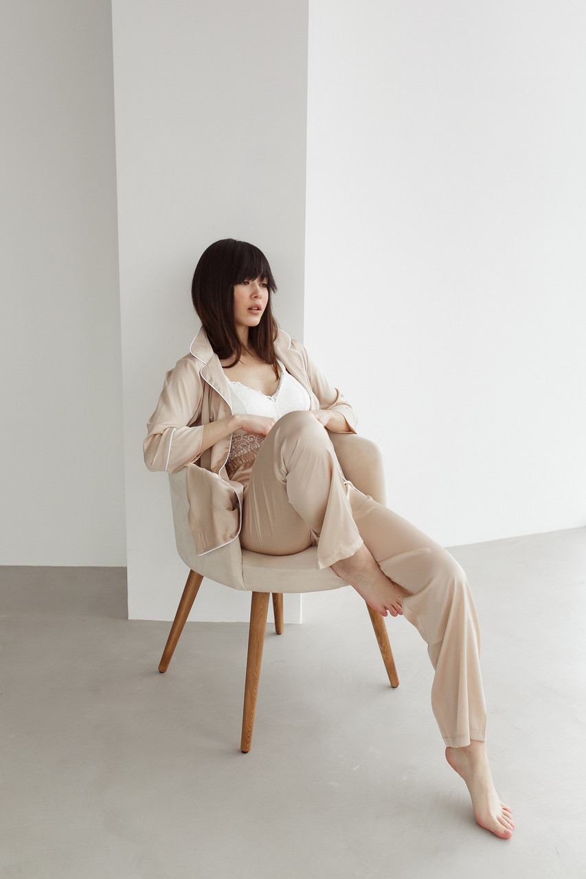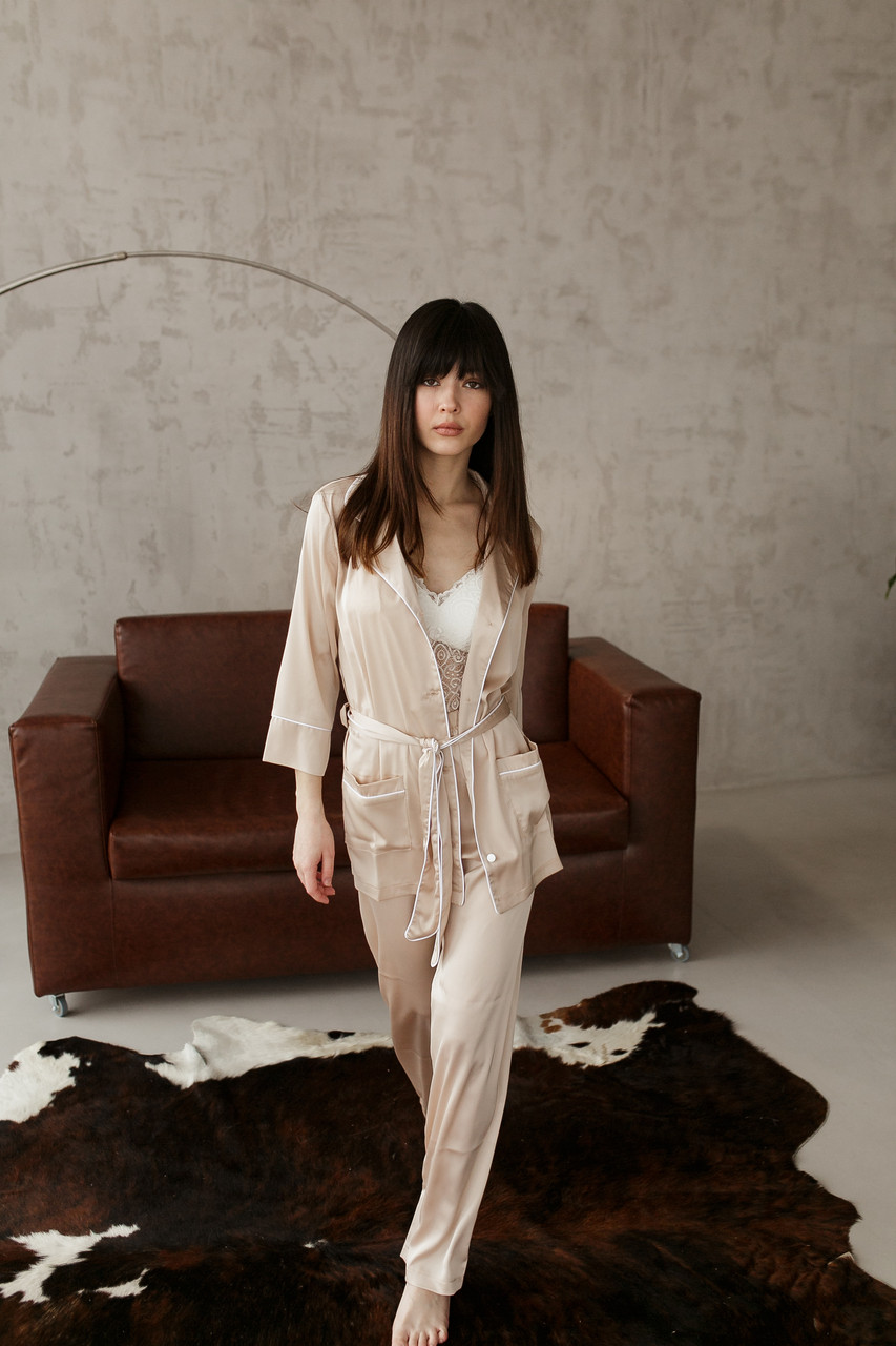 Штани забезпечують вільний рух і є ідеальним доповненням до сорочки. Вони також прикрашені стильними деталями, що роблять цю піжаму досконалою як для вечірнього відпочинку, так і для нічного сну.