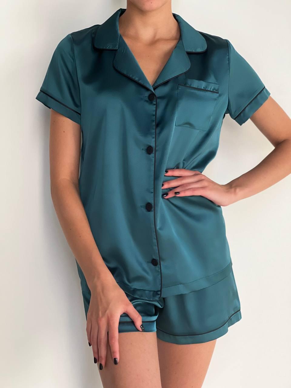 Жіноча шовкова піжама BO.Brand, сорочка та шорти, колір смарагдовий