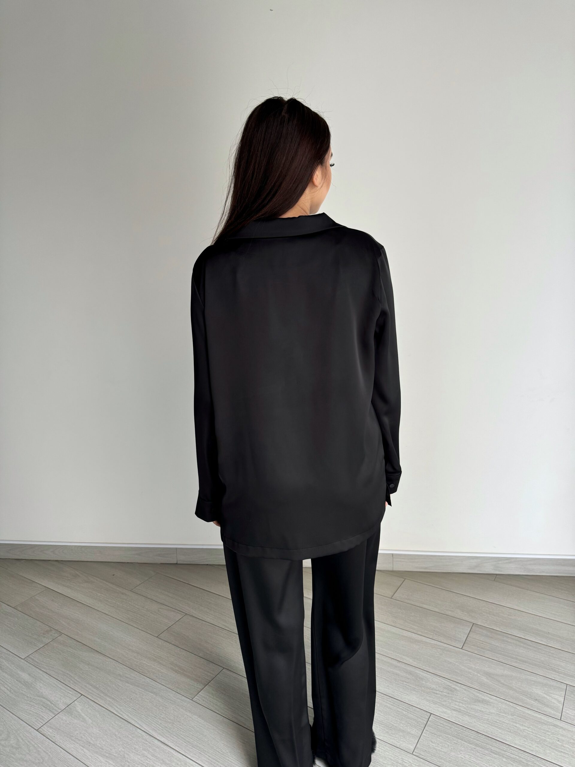 Жіноча сатинова піжама BoBrand в чорному кольорі