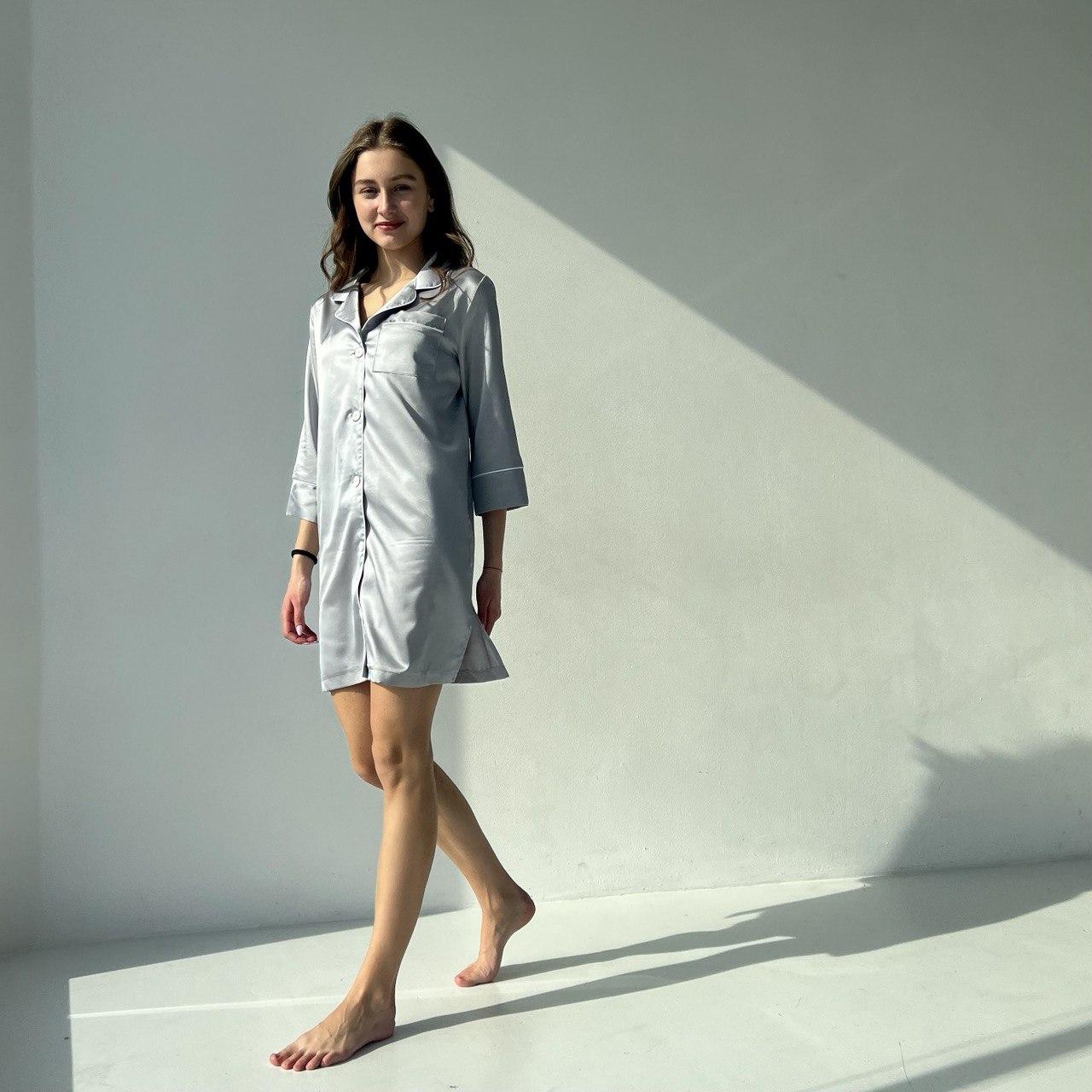 Жіноча шовкова піжама BO.Brand, сорочка для дому, колір сірий металік