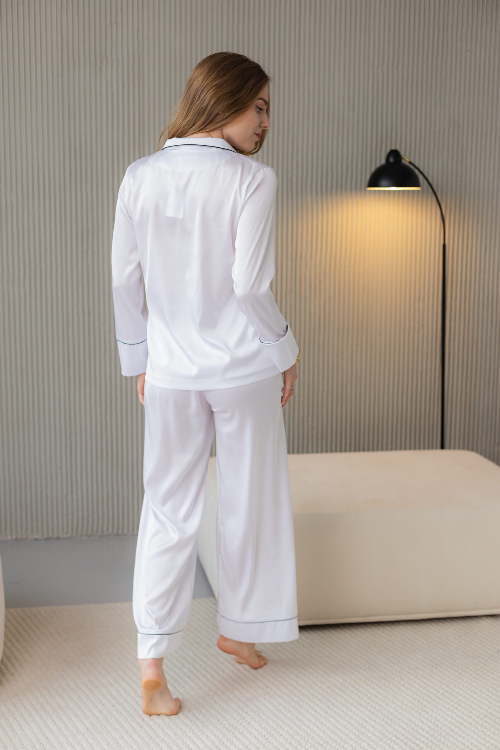 Жіноча шовкова піжама BO.Brand — вишуканий білий комплект (сорочка та штани)