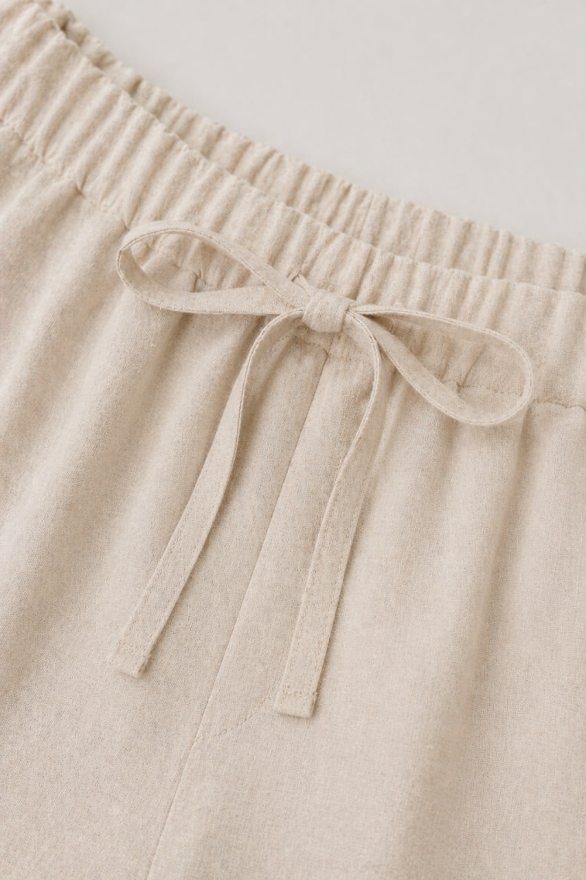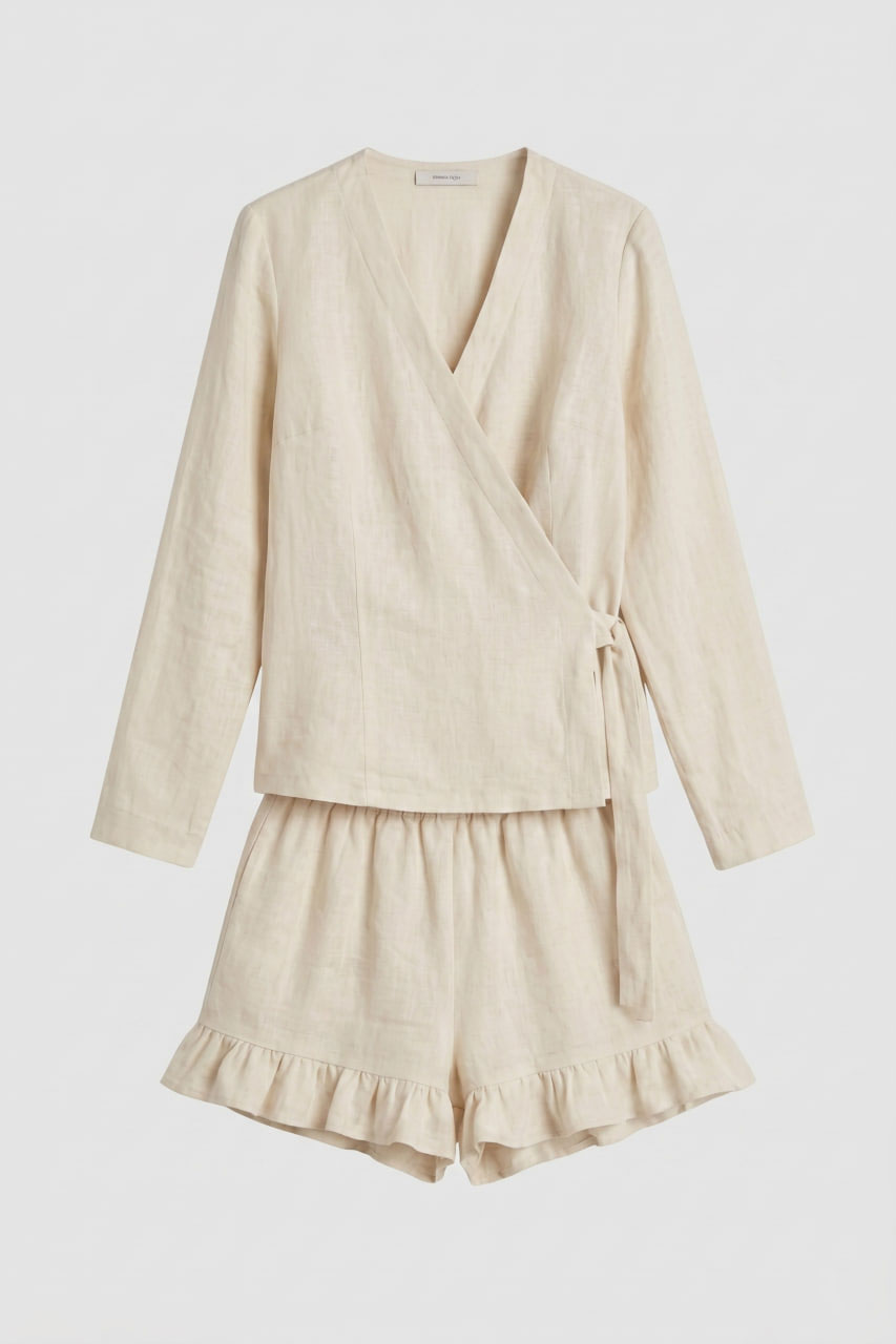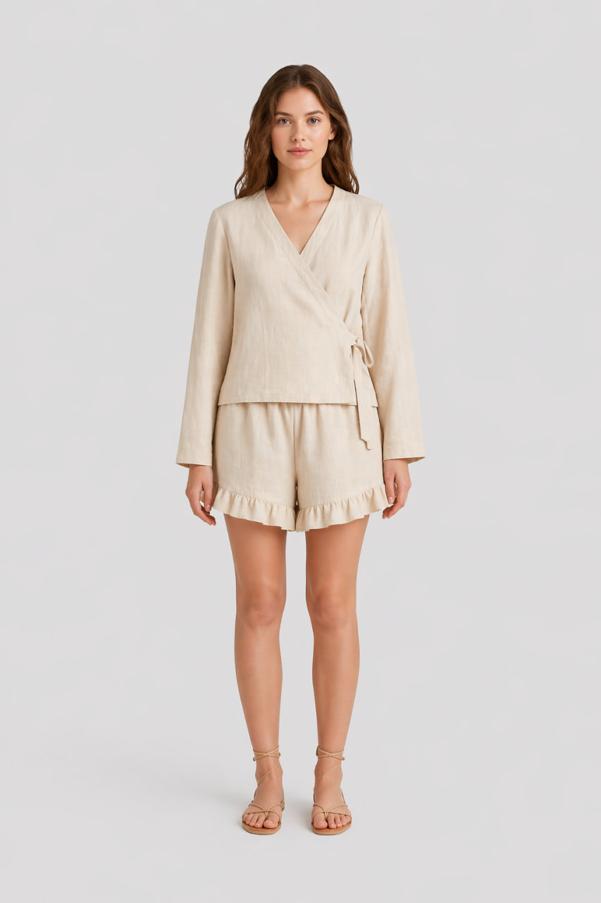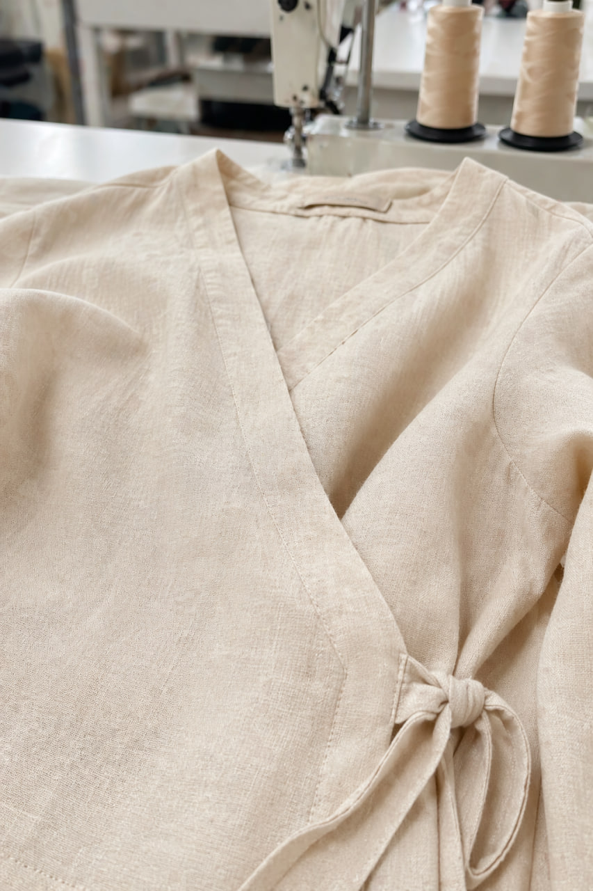 Льон — це екологічний матеріал, який ніколи не виходить із моди. Ми використовуємо тканину високої щільності, яка не просвічує, але при цьому залишається невагомою. Кожна деталь — від швів до фурнітури — відповідає стандартам преміум-якості нашого бренду.