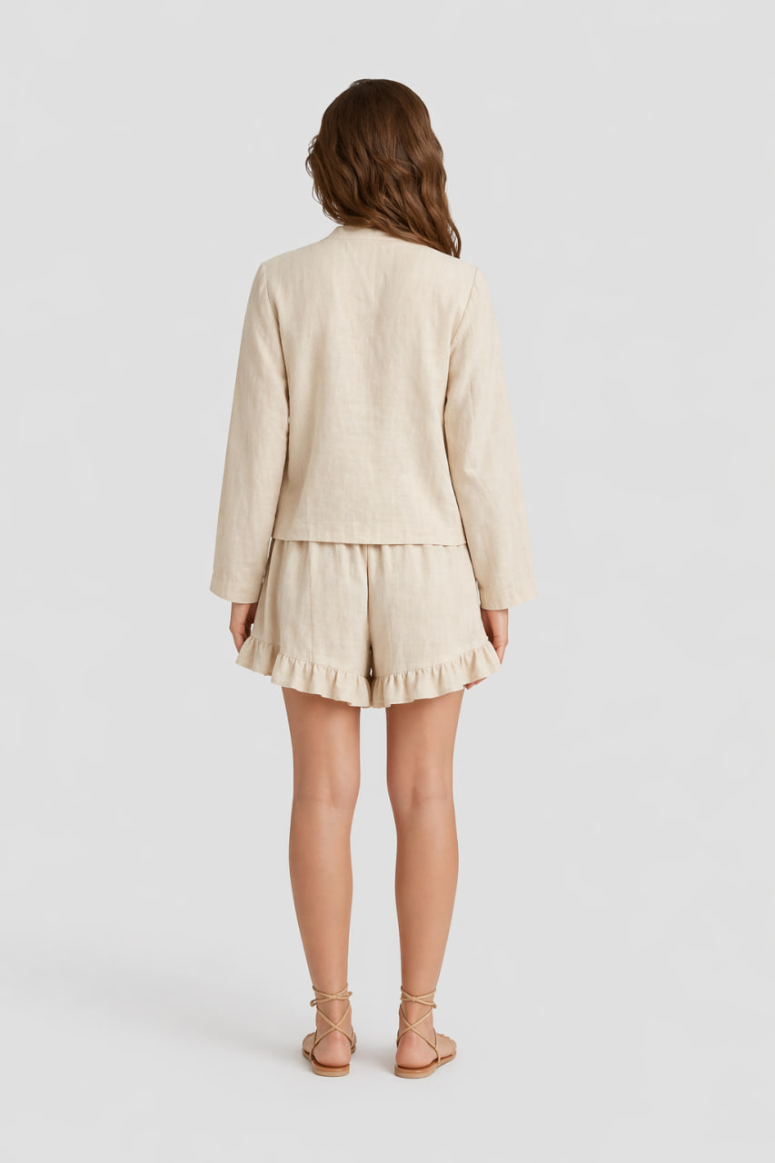 Головна » Магазин » Одяг для жінок » Піжами з шортами » Жіночий літній лляний костюм BO.Brand молочного кольору